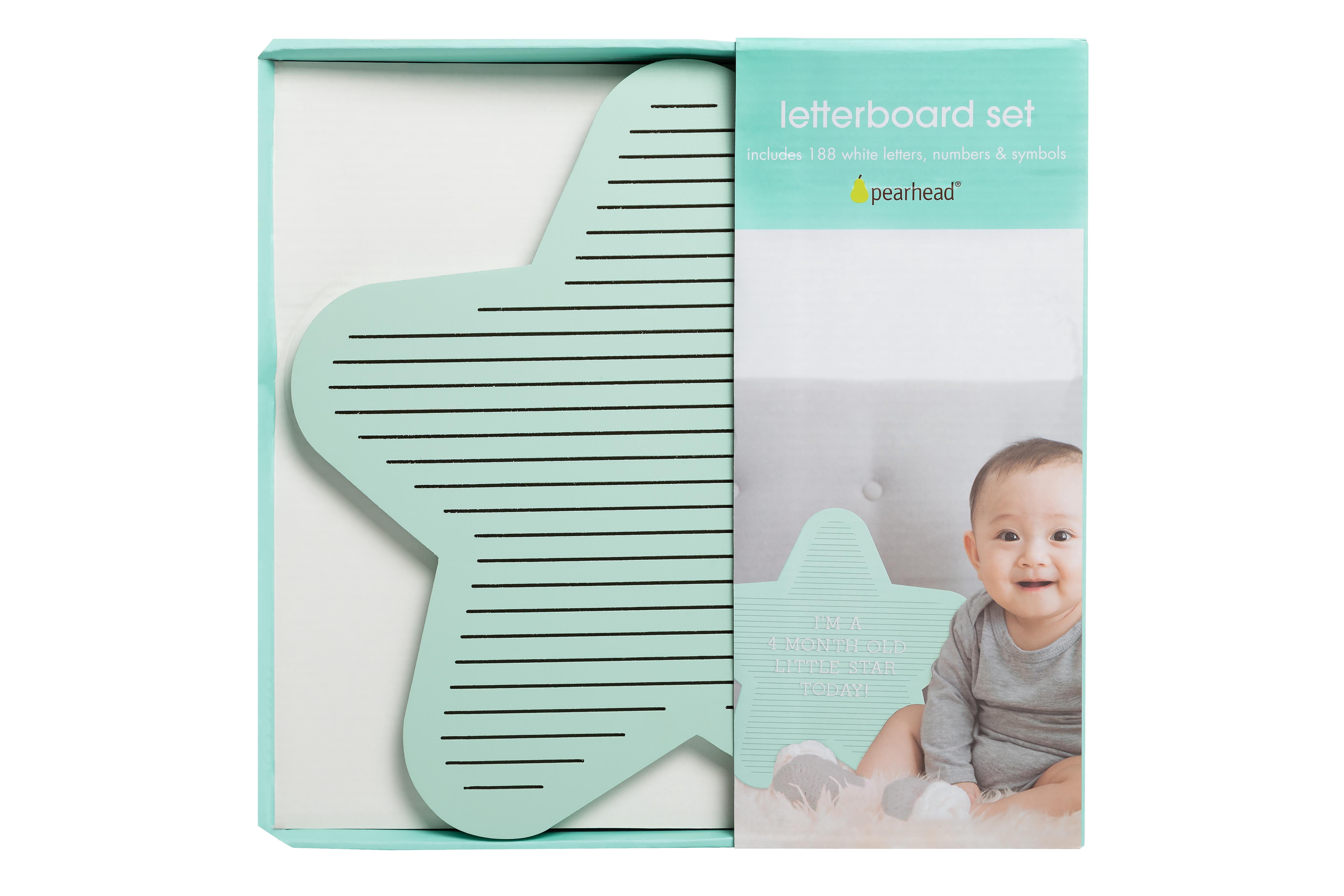 This blue, star shaped, wooden letterboard is a perfect photo sharing prop for any baby boy and when you’re not using it to snap cute pictures it will look great in his nursery! Includes one letterboard with a sawtooth hanger for easy wall mounting, 179 white letters, numbers and symbols. This baby keepsake letterboard is perfect for personalizing with baby milestones like weekly growth, monthly growth, first holidays and other special moments throughout baby’s first year. Add this letterboard to baby’s car nursery, dinosaur nursery, woodland nursery or safari nursery. This blue letterboard is great for any baby shower registry or as a gift to new moms or expecting moms. At Pearhead, we aim to create genuine, quality products to celebrate your special moments in life. We are a family of designers, marketers, and trendsetters bringing products to life that will bring a smile to your face. From concept and design to production and customer service, the Pearhead team works together seamlessly every step of the way. Whether your baby is celebrating their first year of life, you are announcing your pregnancy, or your pup is celebrating his first holiday season, Pearhead is here to share your moments in style.