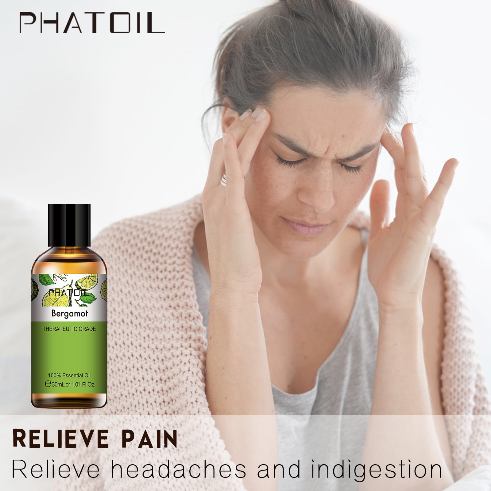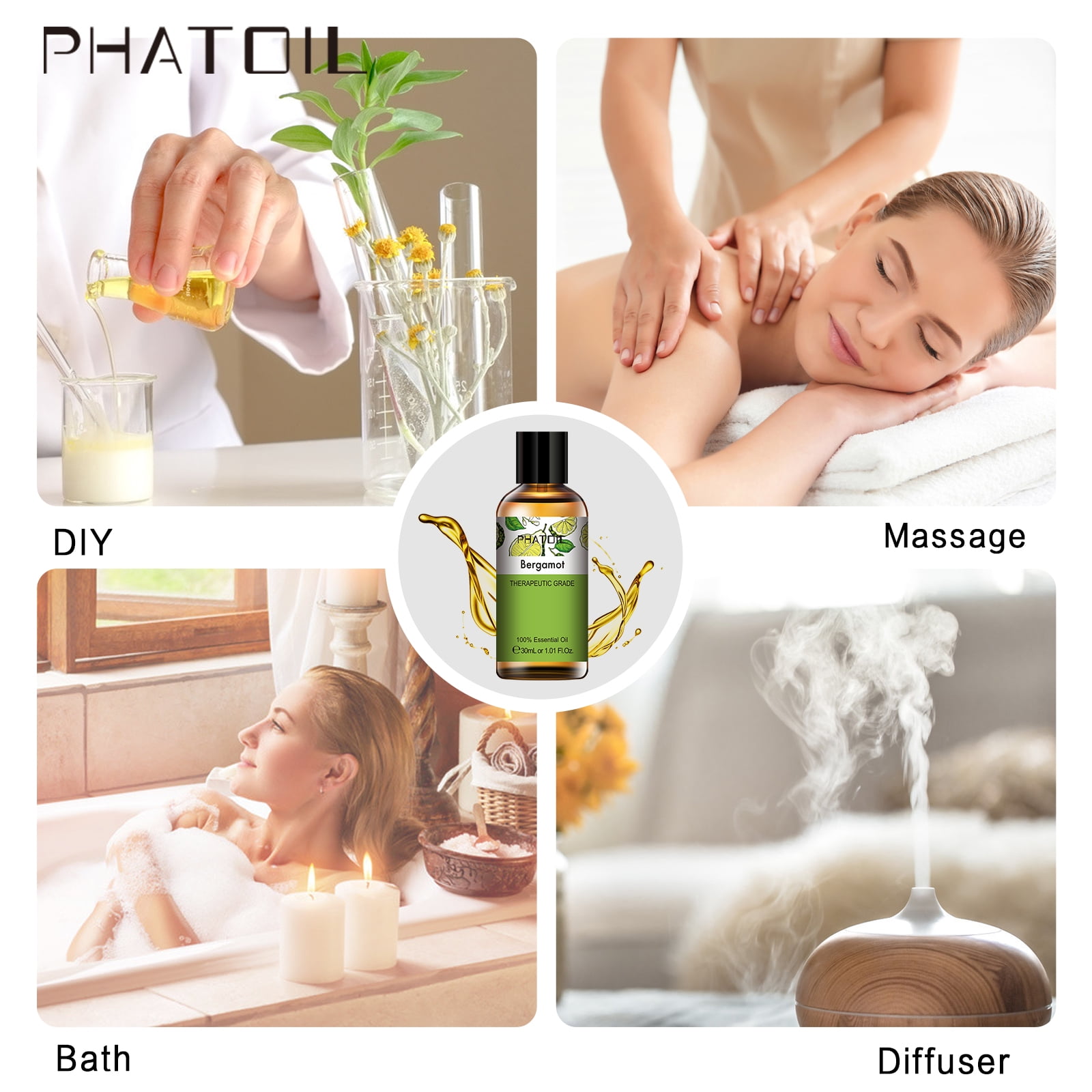 - Bergamot essential oil owns natural aromatic properties, useful in treating depression and anxiety, and anti-spasm.