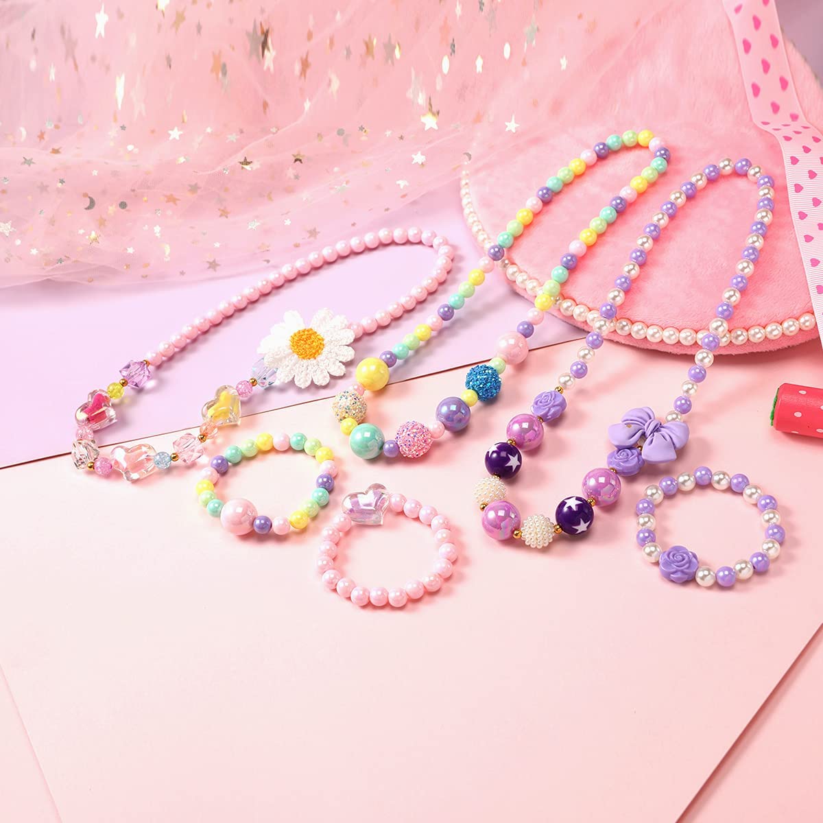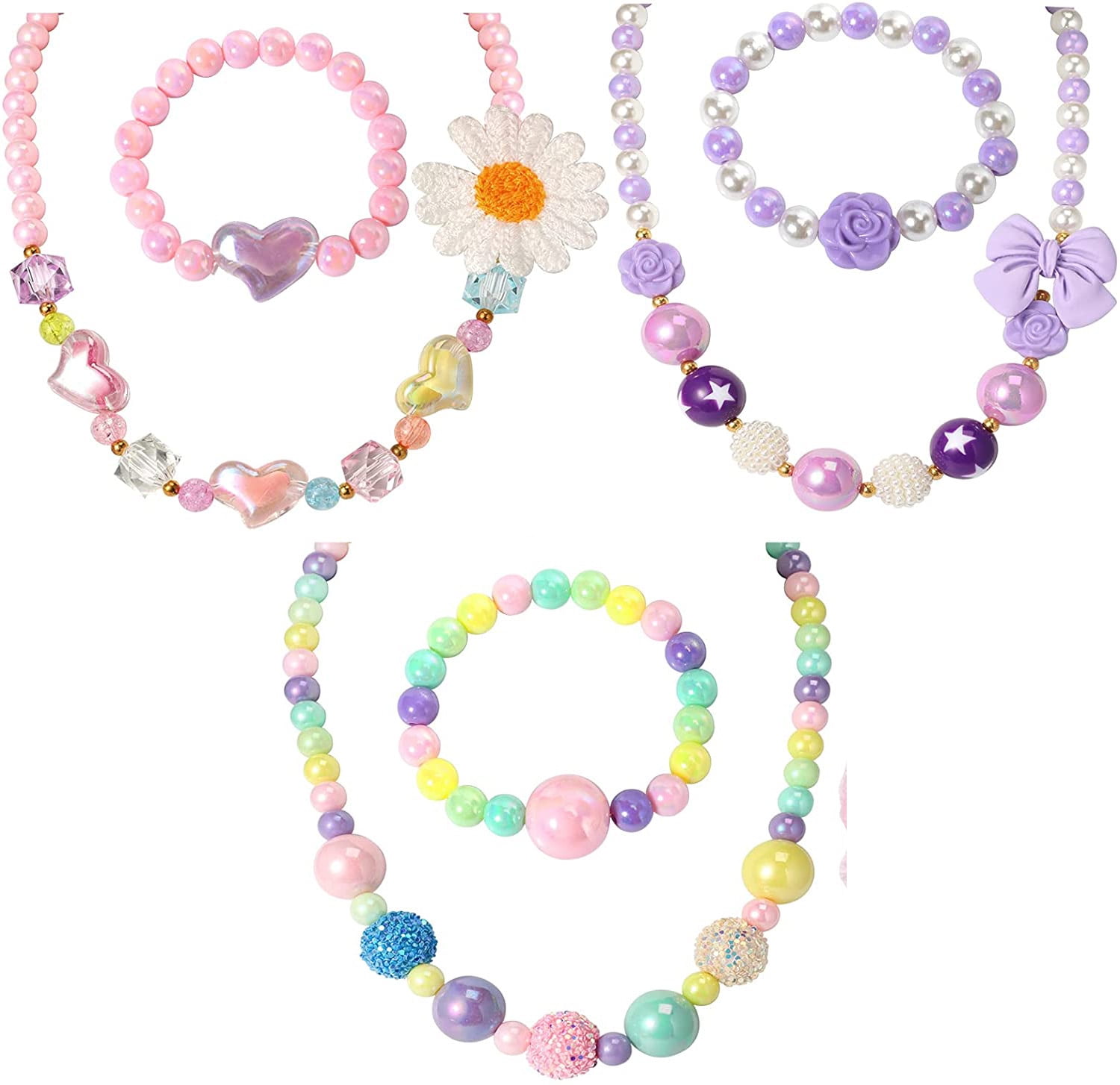 6Pcs Kids Jewelry Set, 3 Set Girl Beaded Necklace and Bracelet with Storage Box for Little Girls