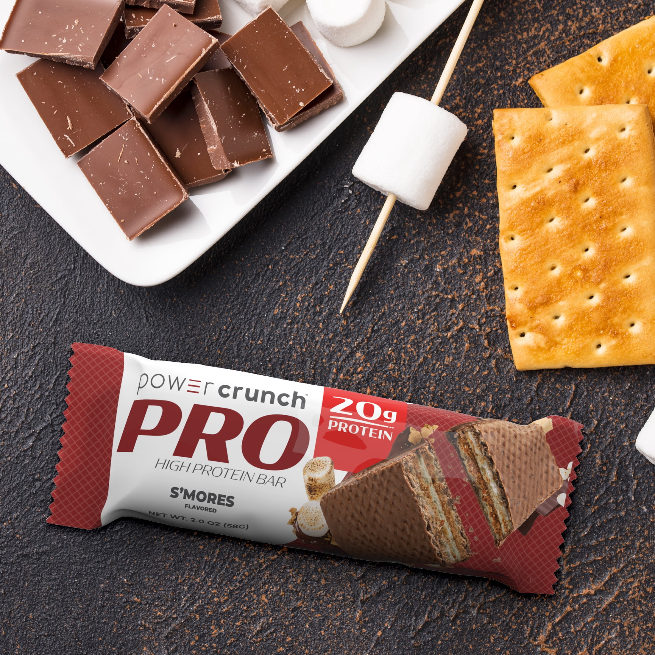 Power Crunch PRO High DH Hydrolyzed Whey protein bar, Smores, 8.2 oz, 4 count. A cult classic that includes chocolate, gram cracker, and marshmallow flavors. The perfect high protein pick-me-up with a side of camping trip nostalgia. This delicious and iconic creme-filled wafer bar is packed with 20g of our super protein nutrition, features High-DH whey hydrolysates, and contains NO sugar alcohols. Power Crunch Pro is for you if you’re looking to support intense workouts or just want to increase the protein intake in your diet.A Protein Bar that Tastes like Dessert- Power Crunch PRO S’MORES PROTEIN BARS tastes like your favorite campfire treat. With 20g of whey protein, No sugar alcohols and an irresistible crunch- this is PROTEIN WORTH CRAVING!You Will Receive- Four (4) Power Crunch PRO Protein Bars, S’mores, 2oz eachEasy to Digest Snacks Unlike any Other- Power Crunch PRO High Protein Bars are made with high -DH hydrolyzed Proto Whey Protein. This is the pinnacle of smart protein nutrition. Up your Sports Nutrition Game: Power Crunch PRO Bars are excellent pre-workout and post workout snacks. Grab a bar before your workout for the energy boost you need, and treat yourself after your workout for optimal recovery. Delicious tasting WHEY PROTEIN Bars- Power Crunch PRO Bars have 20g of whey protein, 5 grams of sugar and NO sugar alcohols.