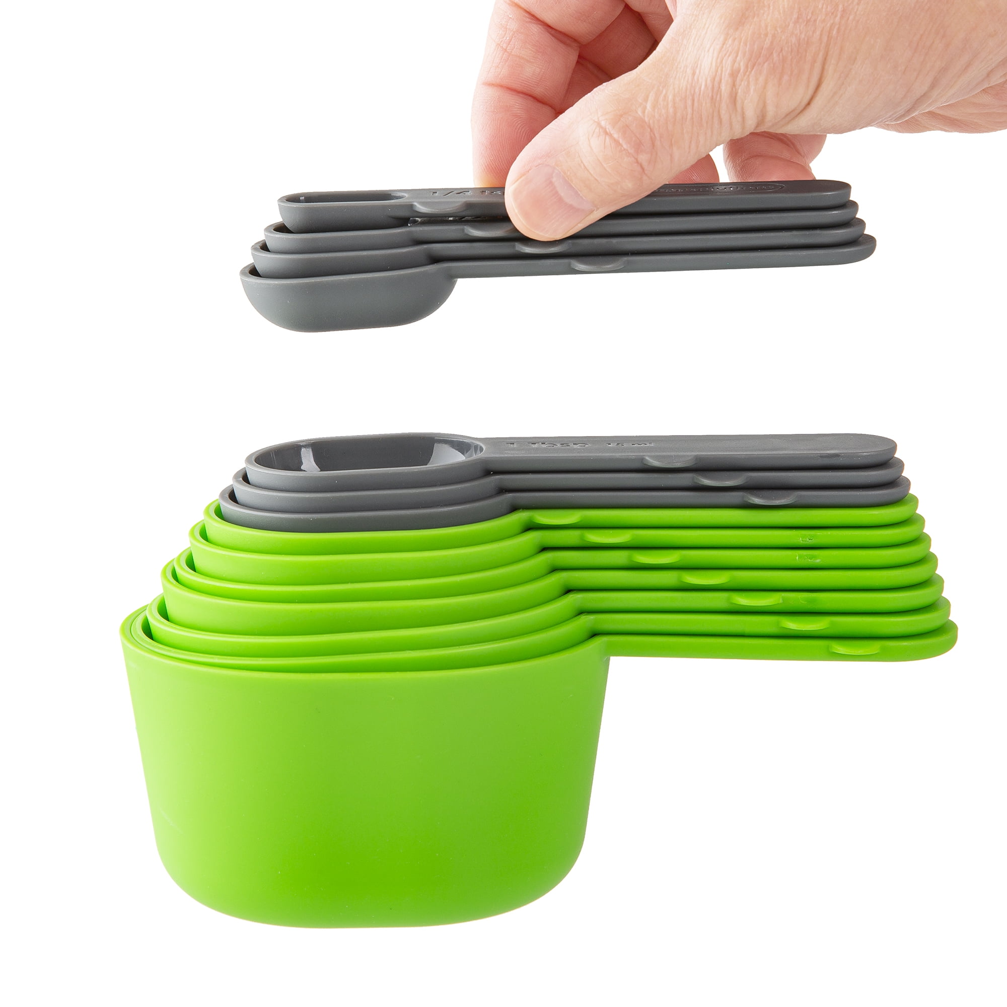 Experience a nesting measurement cup and spoon set with magnetic handles for secure, tidy storage with the Prep Solutions 15 Piece Magnetic Measuring Set. The set includes 8 measuring cups and 7 measuring spoons. Cooking and baking are simple with the Prep Solutions 15 Piece Measuring Set. Easily measure, scoop and pour your desired ingredients into your desired dish. The cups and spoons nest within each other for convenient storage.