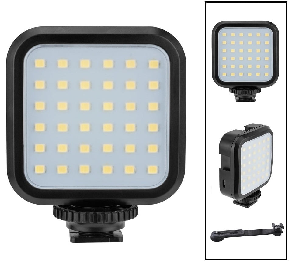 Package Includes: LED Photo/Video Light Built-in Rechargeable Batteries (For LED Light) Charging USB Cable Instruction Manual Product Description: LED technology offers lamp longevity, low power consumption and daylight illumination. Utilizes supplied rechargeable batteries for power source. Built-in rechargeable batteries Included for LED Light Securely connects to the standard show mount on most digital HD Camera/Camcorders 3-Power Leven for Brightness Power output: 2.2V Lamp Type: 5500K LED Mount Type: Shoe mount Dimensions: 58 x 40 x108 mm Warranty: 1 Year Limited WarrantyPro Compact LED Light Kit With Power Set For Canon EOS M6 M50