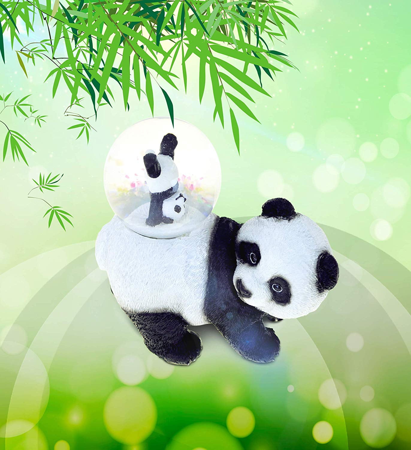 - THE PANDA SNOW GLOBE COMES WITH A UNIQUE DESIGN YOU LOVE – Show your love for forest animals with a sparkly fun Panda tabletop decor. The animal snow globe figurine is a cute black and white Panda design with a smaller Panda on its back inside the water globe. Shake the globe to see the sparkly snow confetti fall on top the Panda and enjoy the show! Our hand painted Panda Snow Globe is a unique novelty collectible home decor.