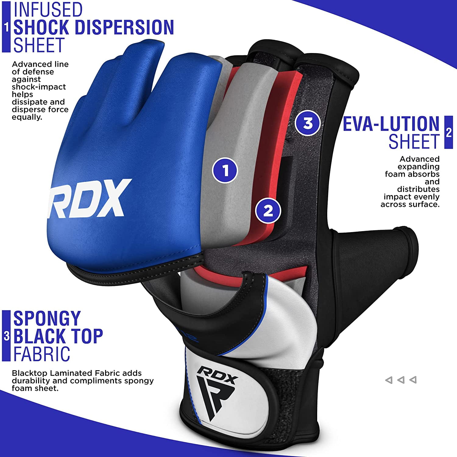 - RELENTLESS PROTECTION Our RDX MMA gloves feature a superior tri-slabbed PC-3 padding that provides optimal impact resistance to the hands during training sessions. Ideal for trainees for MMA, Kickboxing, Muay Thai sessions.