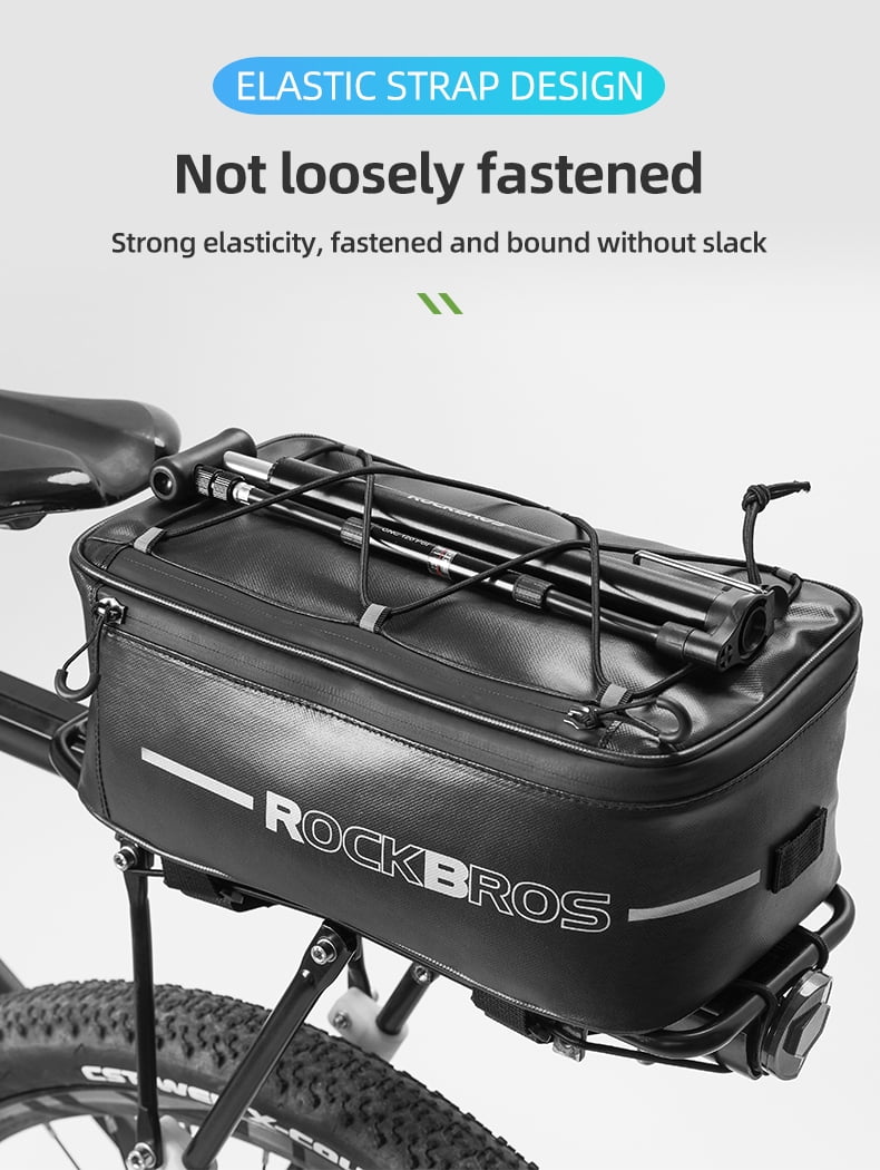 A large capacity bike trunk bag features to carry your items when you’re riding a bike. The elastic bungee cord also helps increase the storage space of the bag help fix your clothes, towels, water bottle, mini pump, etc. It is suitable for medium and long-distance riding. Features: Constructed of PU, anti-abrasive and water-resistant. Reflective strip for increased visibility and safety at night. Elastic bungee cord on the top for increasing storage space. Quick-release mounting straps for easy installation. Great for carrying groceries, etc. This Bike Trunk Bag with ergonomic design provides more convenience during your riding trip!