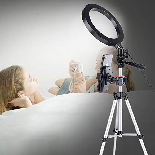 - 3 MODES 5.7" RING LIGHT: the led light design with 11 adjustable brightness for your choose, meet all your needs in different circumstances. 3 light modes: white, warm yellow, warm yellow + white. It will come in handy whenever you need extra light for making up, taking photos, making videos, reading books,and live streaming!