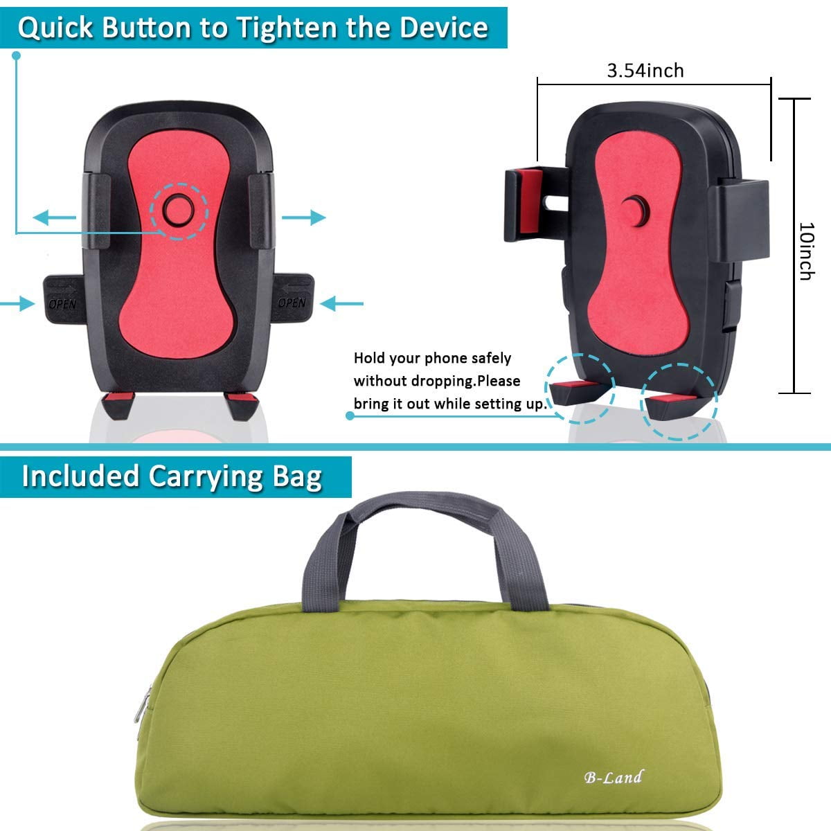 - QUICK RELEASE CELL PHONE HOLDER: packaged with universal cell phone holder, very easy to use: squeeze the open arms together to expand the arm automatically and put the phone on it, press the phone to release the button on the back and the phone will be tightened on the device. It will compatible with most of smart phones, like iphone 7 plus, 7, 6, 6s, 5, 5s, 4, 4s/iPod touch/Samsung/LG/Huawei/HTC,ect.