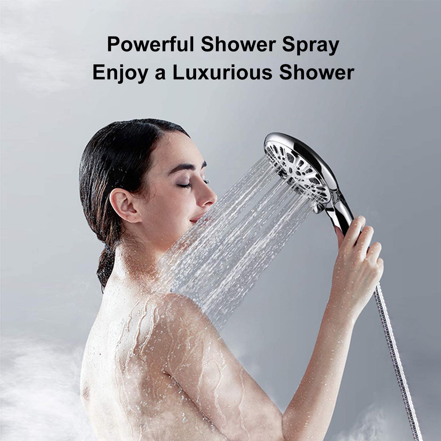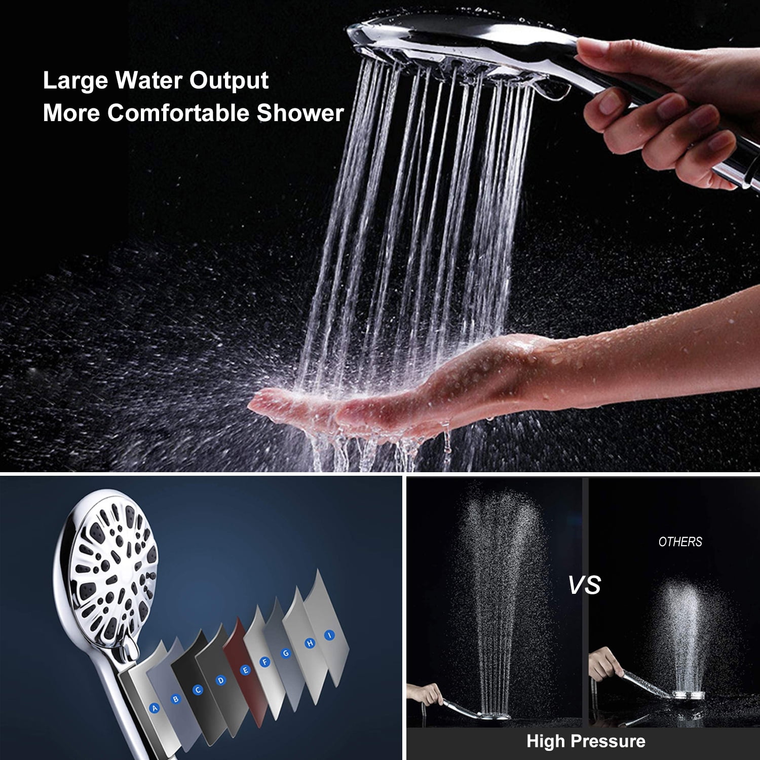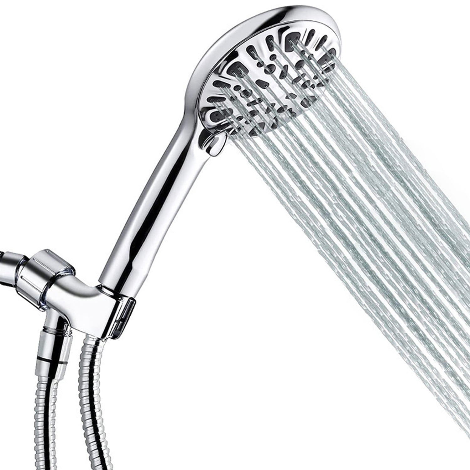 This multifunctional hand shower comes with 9-Spray functions, rain, mist, massage, and mix modes, especially water saving mode to pause water temporarily while shampooing, soaping up, or shaving.