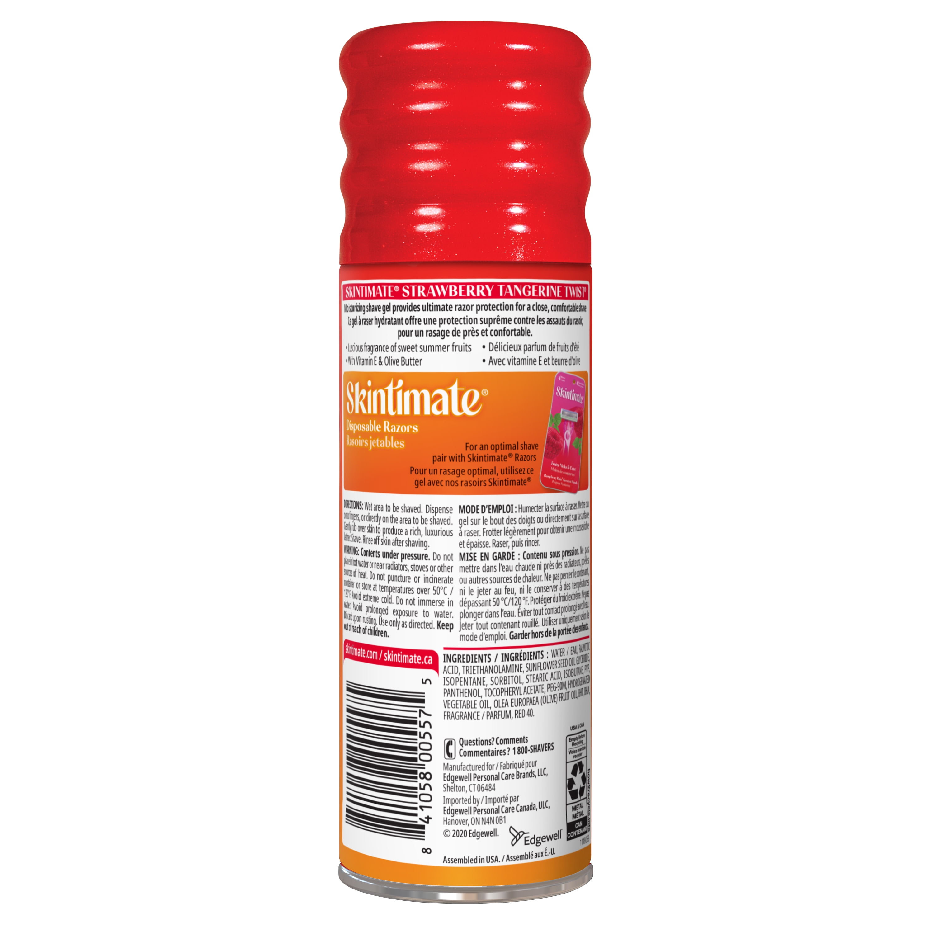 Skintimate strawberry tangerine twist moisturizing women’s shave gel starts with the scent of sweet summer fruits and adds a twist of moisturization for a close shave and smooth, healthy feeling skin. Six moisturizers. One smooth shave. Don’t let the blissfully sweet scent of Skintimate signature scents strawberry tangerine twist moisturizing women’s shave gel fool you – with vitamin e and olive butter to help replenish your skin’s natural moisture while delivering a wonderfully close and comfortable shave. Skintimate shave gel foams into a rich, creamy lather that offers unbeatable razor protection for a close, comfortable shave and healthy feeling, smooth skin.