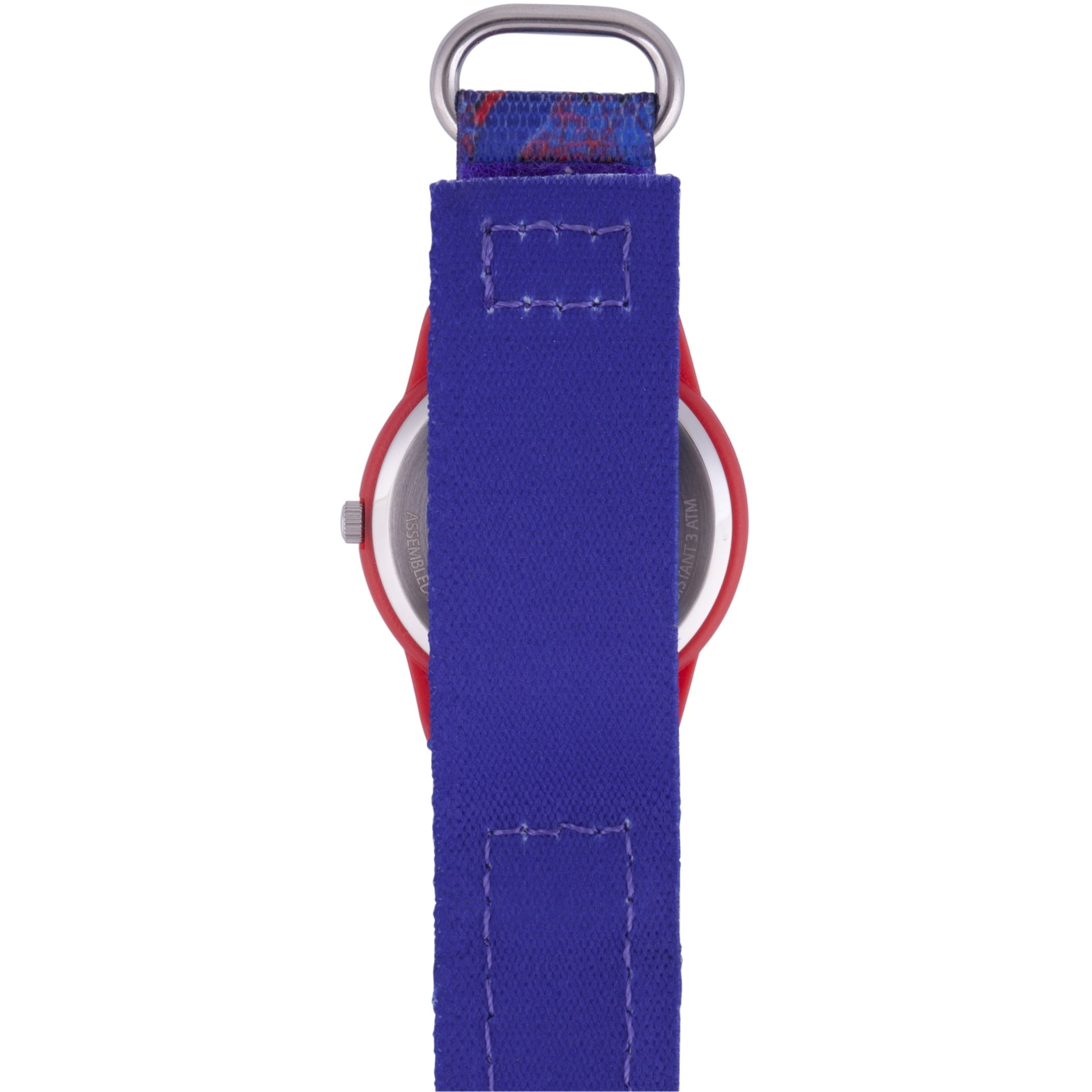 Dinosaur Boys’ Black Plastic Time Teacher Watch, Reversible Blue and Black Elastic Nylon Strap