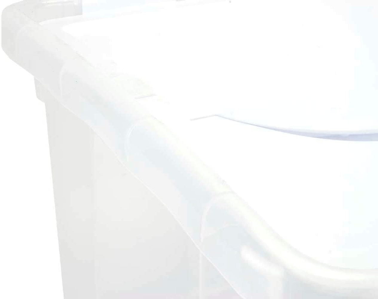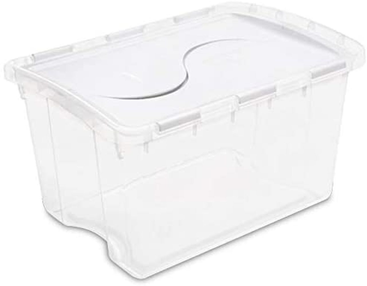 , 48 qt, hinged Lid storage box, white Lid with see through base, size: 22-3/8"l x 15-7/8"W x 13-1/8"H.