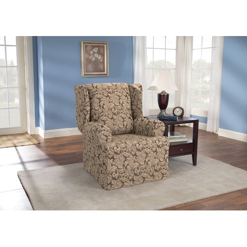 Sure Fit Wing Chair Slipcover, Scroll Brown: