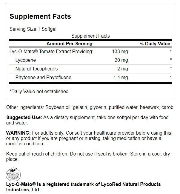 Swanson Lyc-O-Mato Lycopene – Double Strength 20 mg 60 Softgels