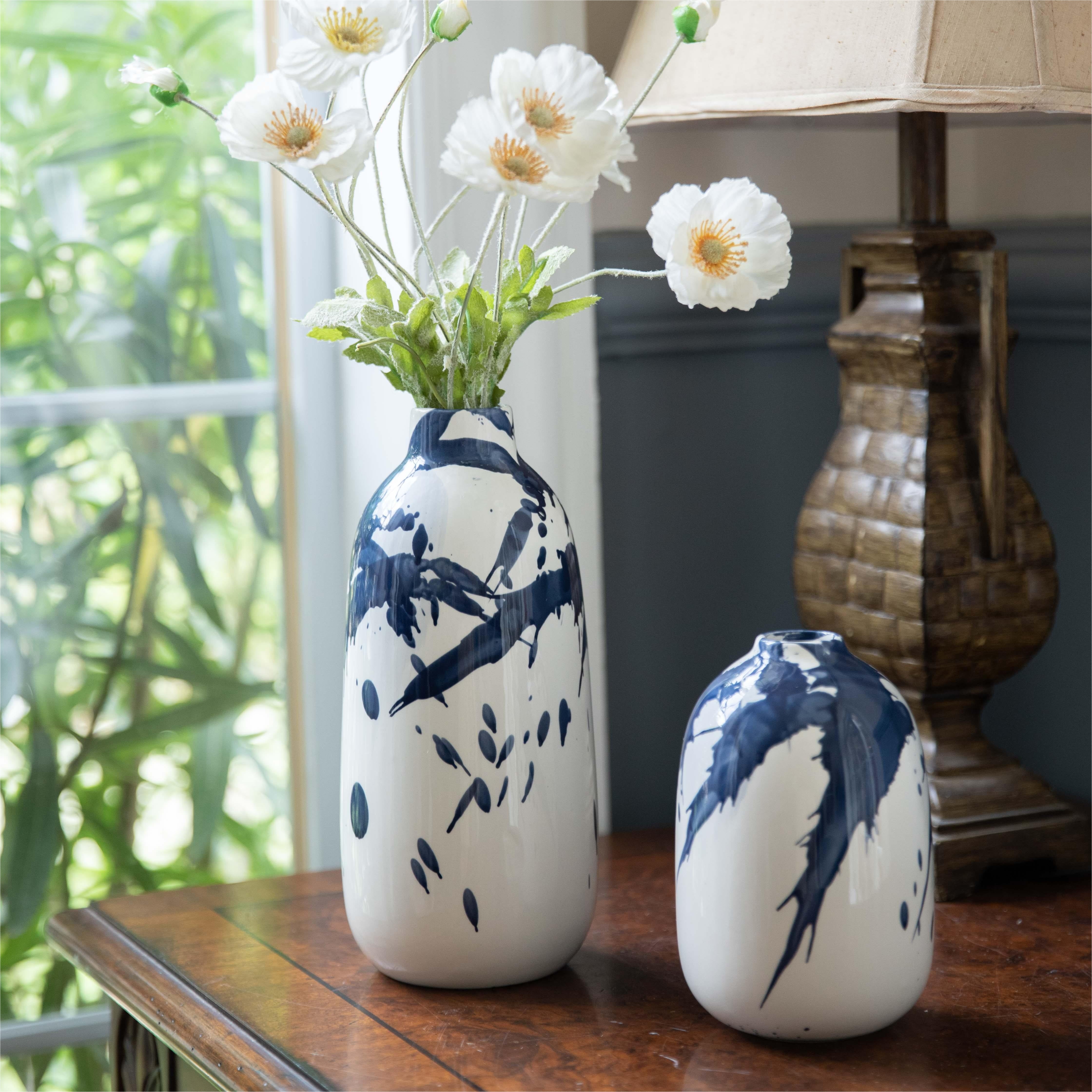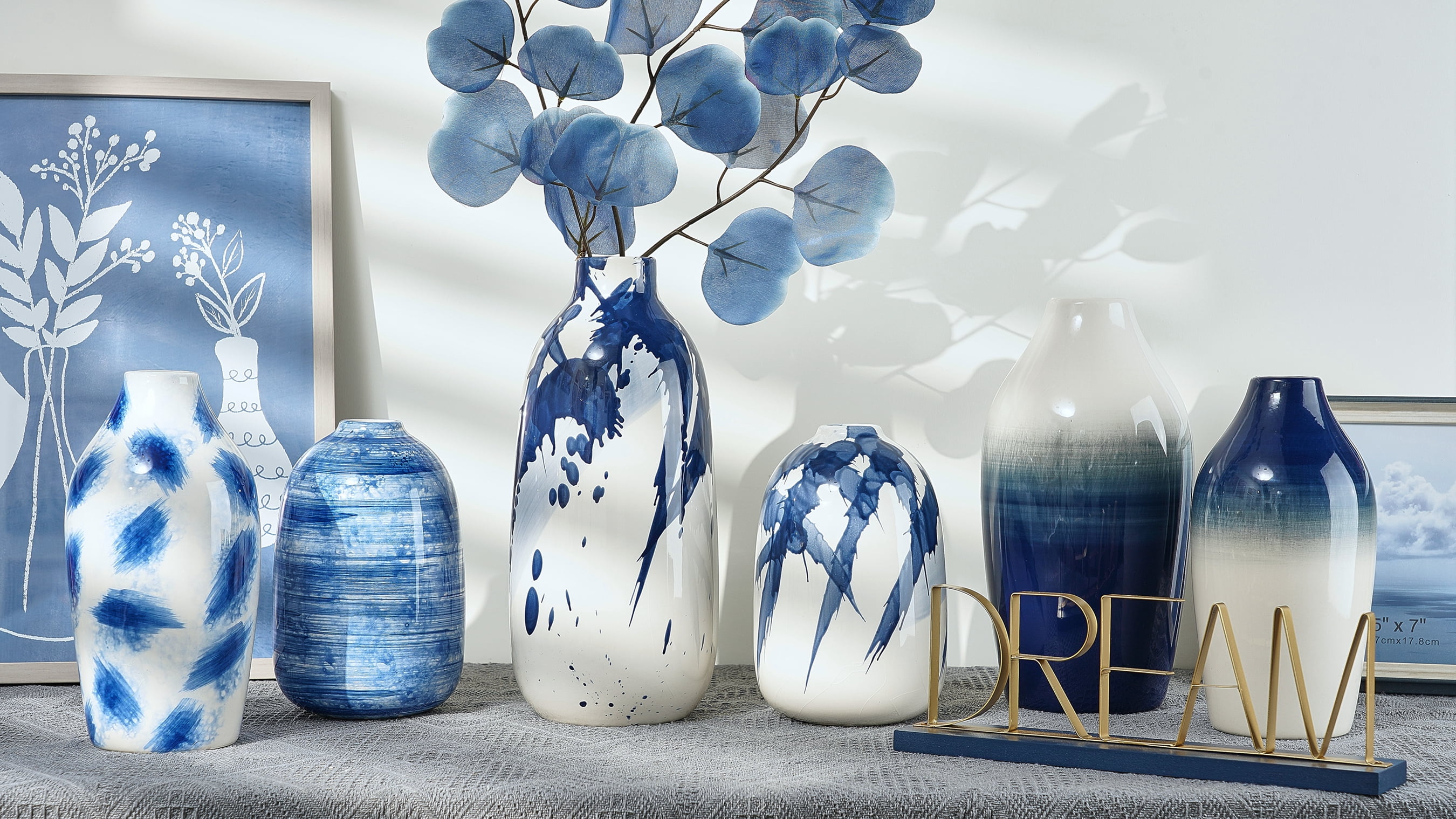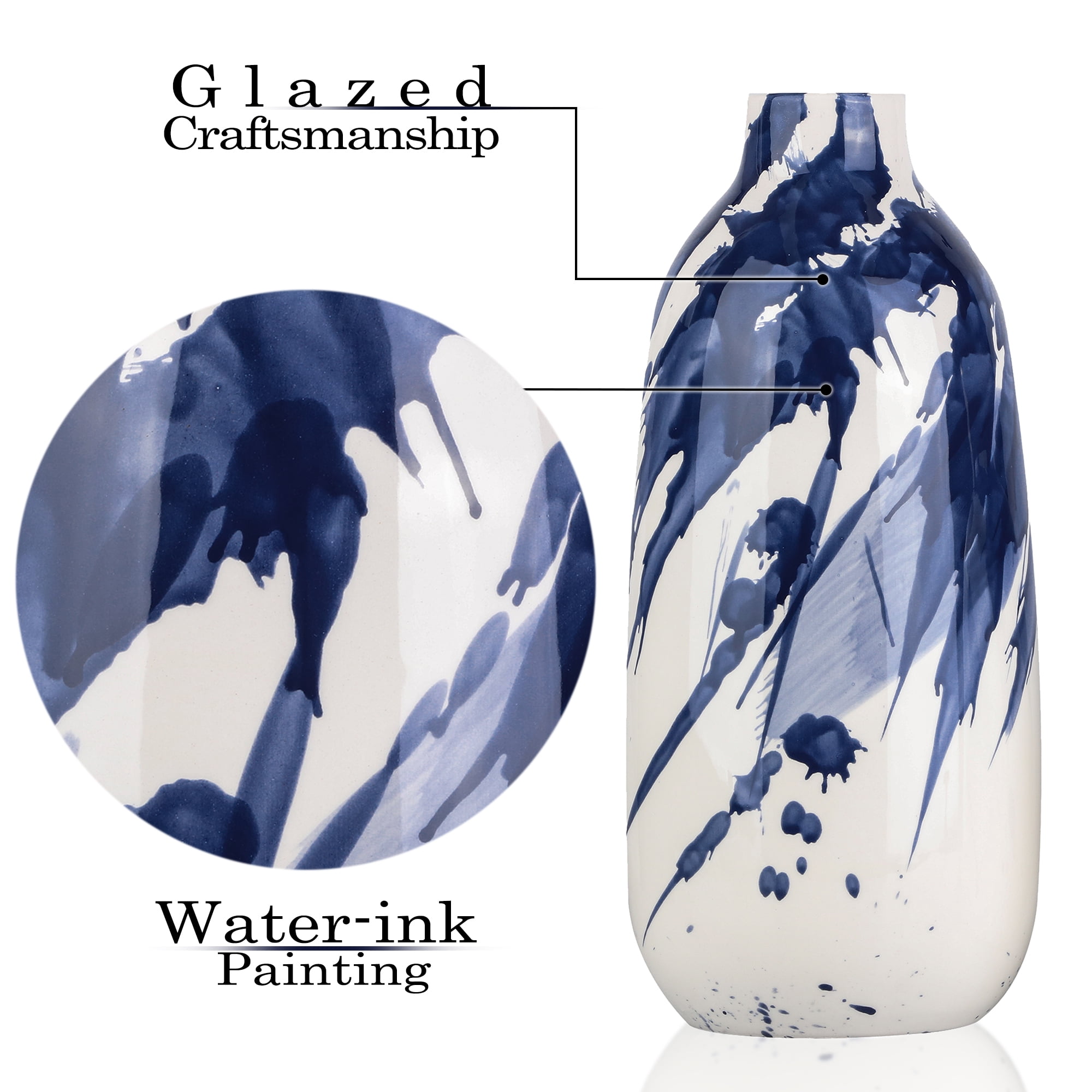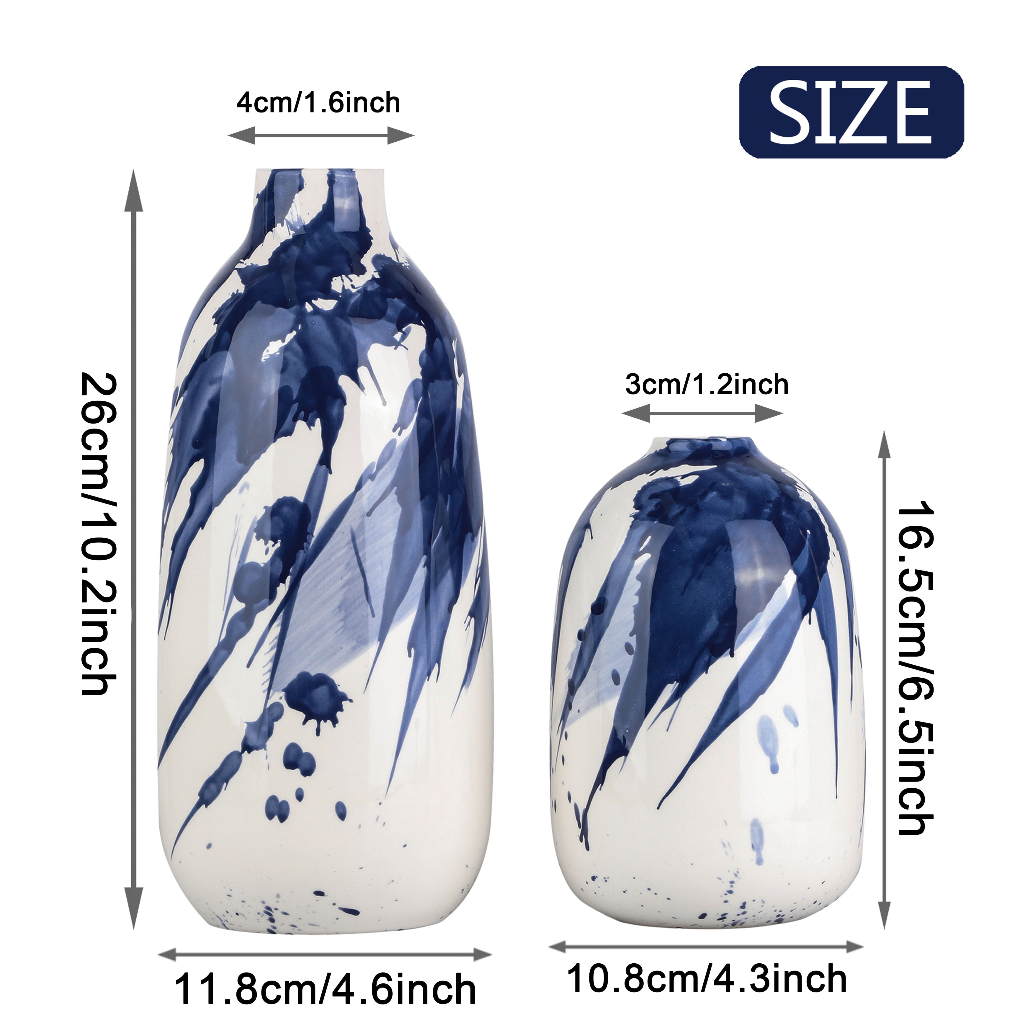 TERESA’S COLLECTIONS 10”H, 6.5”H Blue Ceramic Vases for Home Decor, Modern Decorative Vases Set of 2, Tall Vases for Indoor Living Room Decoration