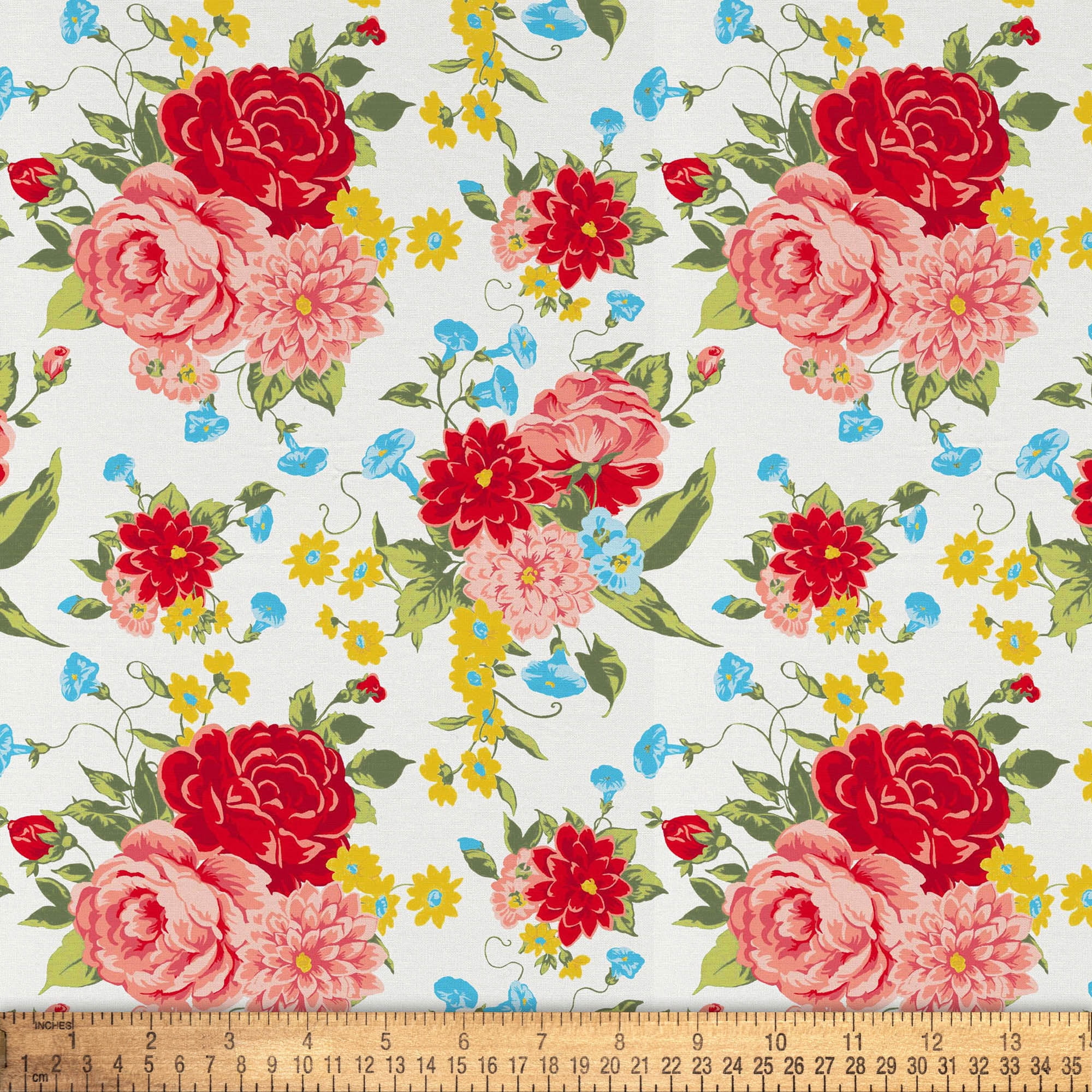 The Pioneer Woman 44" x 1 Yard 100% Cotton Sweet Rose Floral Sewing & Craft Fabric Precut, White