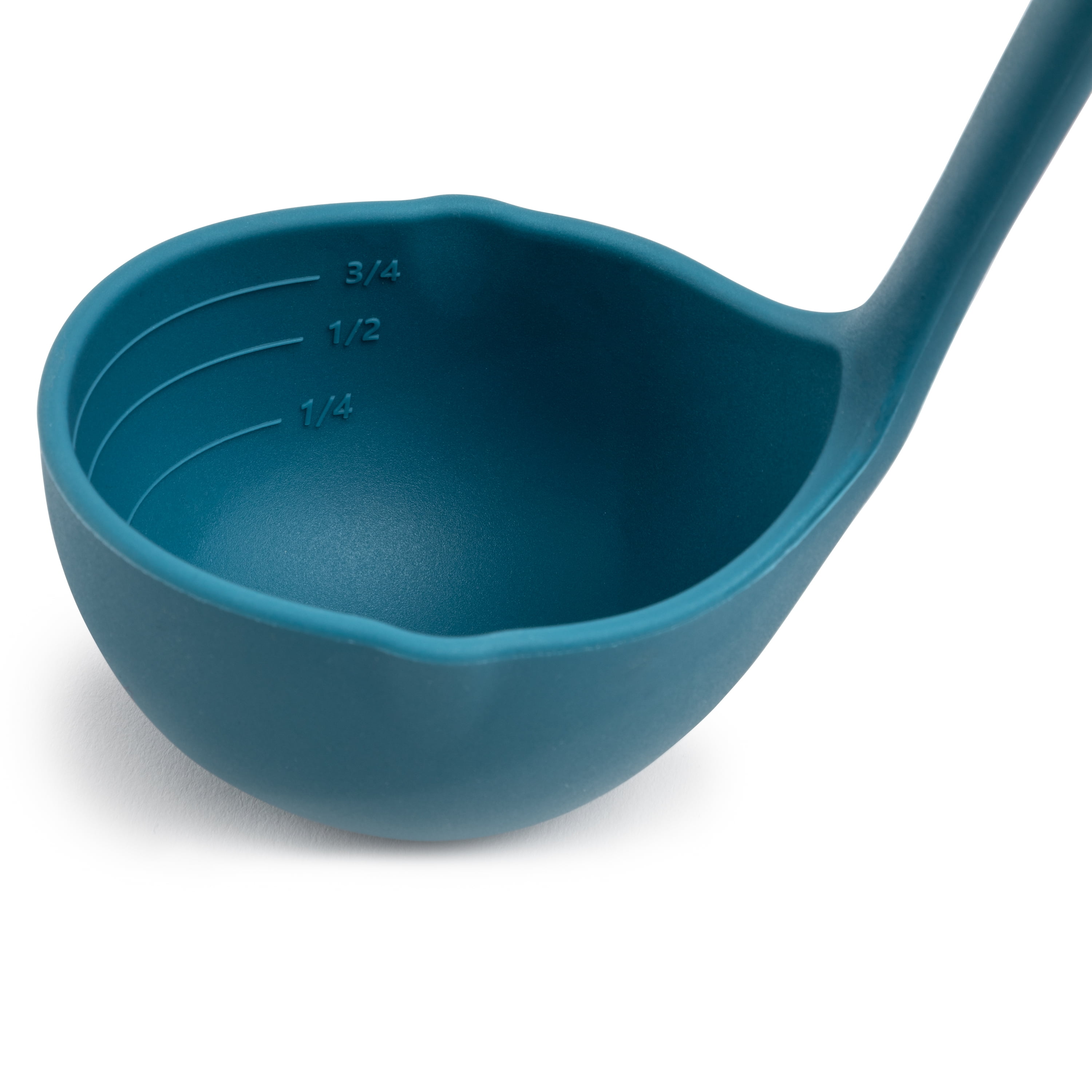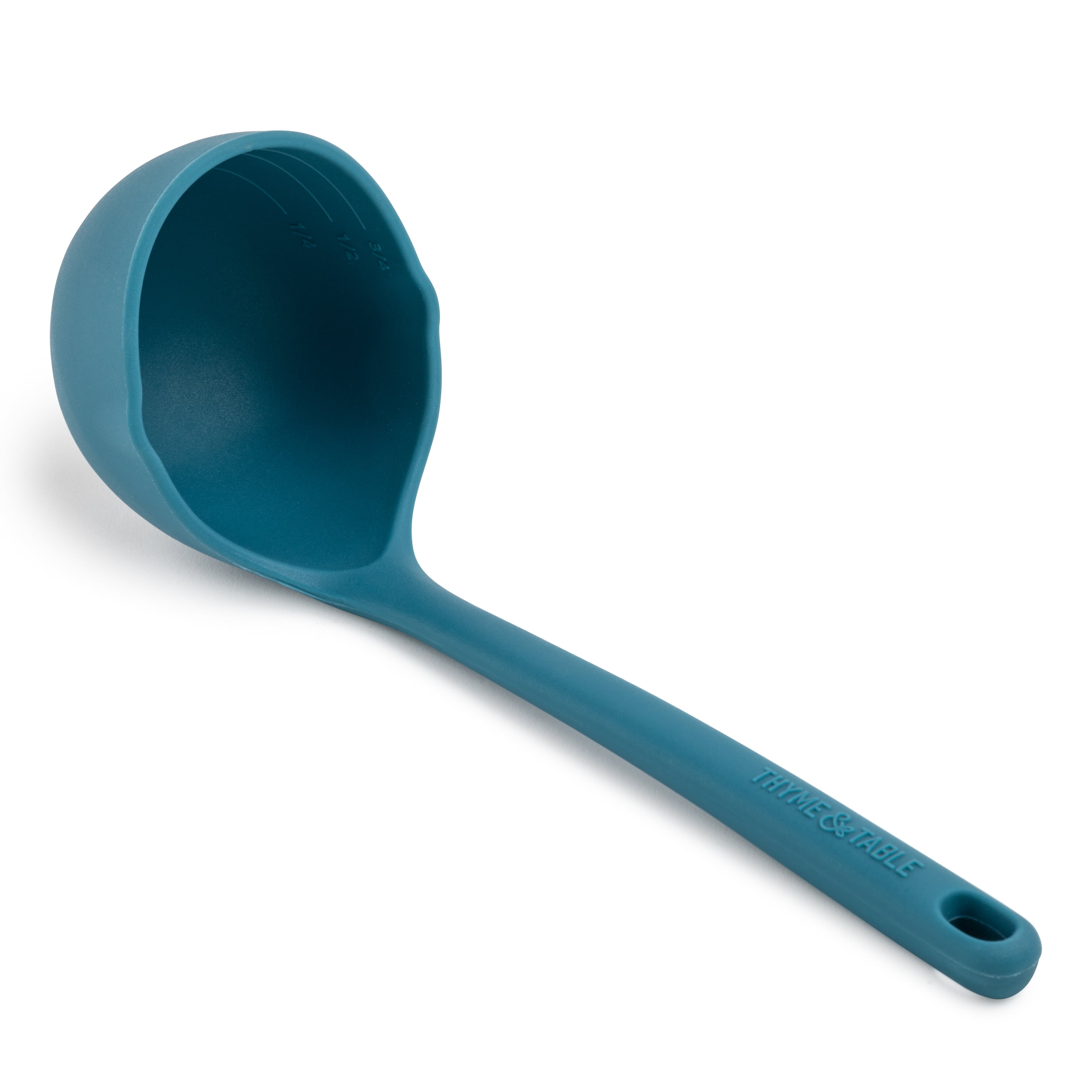 Thyme & Table Silicone Ladle, Blue is a part of the Thyme & Table Essential Collection. The silicone ladle is lightweight and durable, as well as heat resistant up to 428 degrees. Made of food safe silicone.