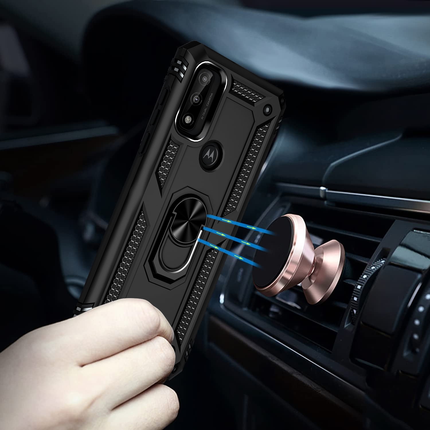 TJS phone case compatible with Motorola Moto G Pure 2021 / Moto G Power 2022. Built-in metal plate, can be attracted to a magnetic car mount holder (NOT INCLUDED). Making you enjoy your GPS or music to the fullest. Dual layers of shockproof TPU and solid PC for double protection. Specially tough reinforced four-corner Non-slip texture protect your Phone from all bumps and falls.Textured interior for additional shock absorbent protection. 360 Degree Rotating Ring Holder: Double as kickstand for hands-free viewing. Includes responsive button covers with crisp feedback, precise cutouts and raised lip protection.