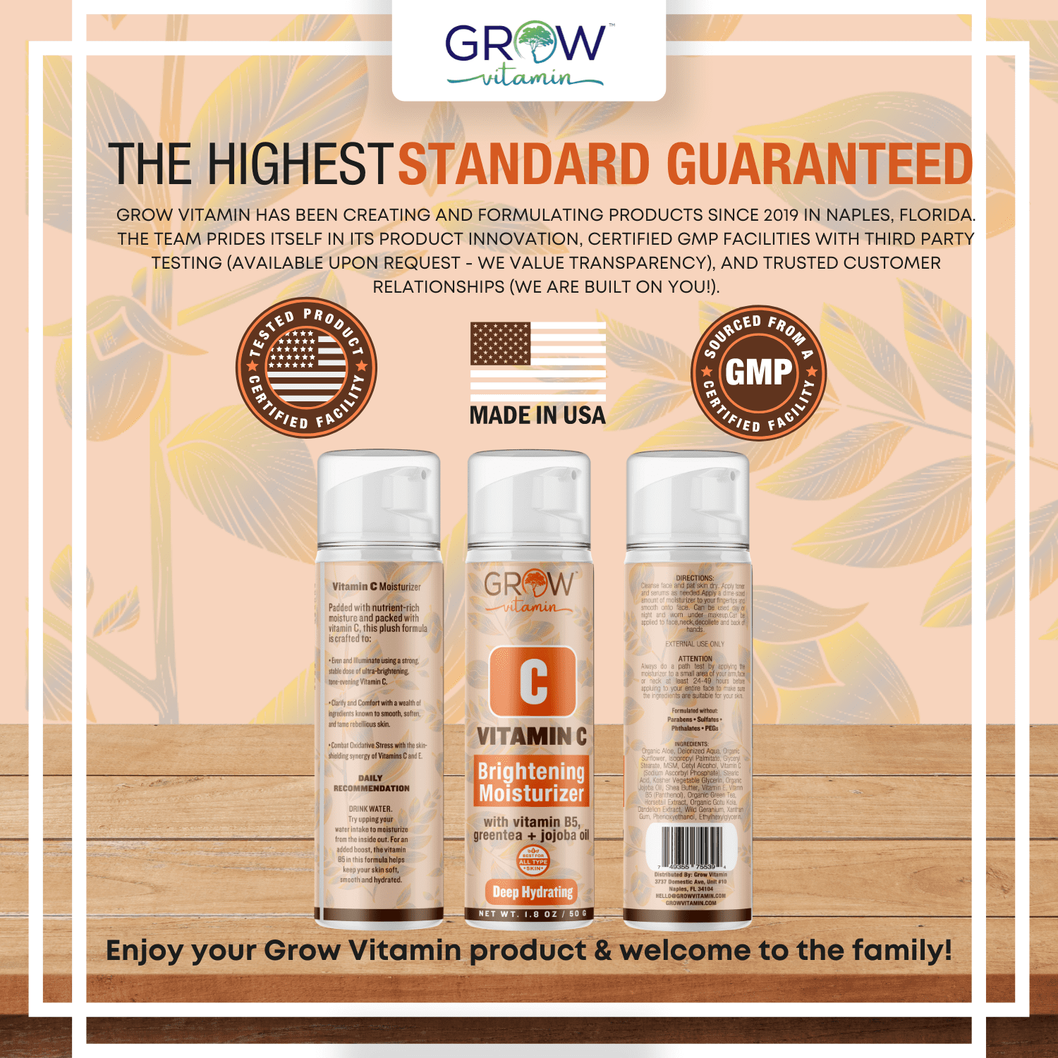 No secrets, no hidden ingredients. Grow Vitamin’s Vitamin C Moisturizer is formulated without