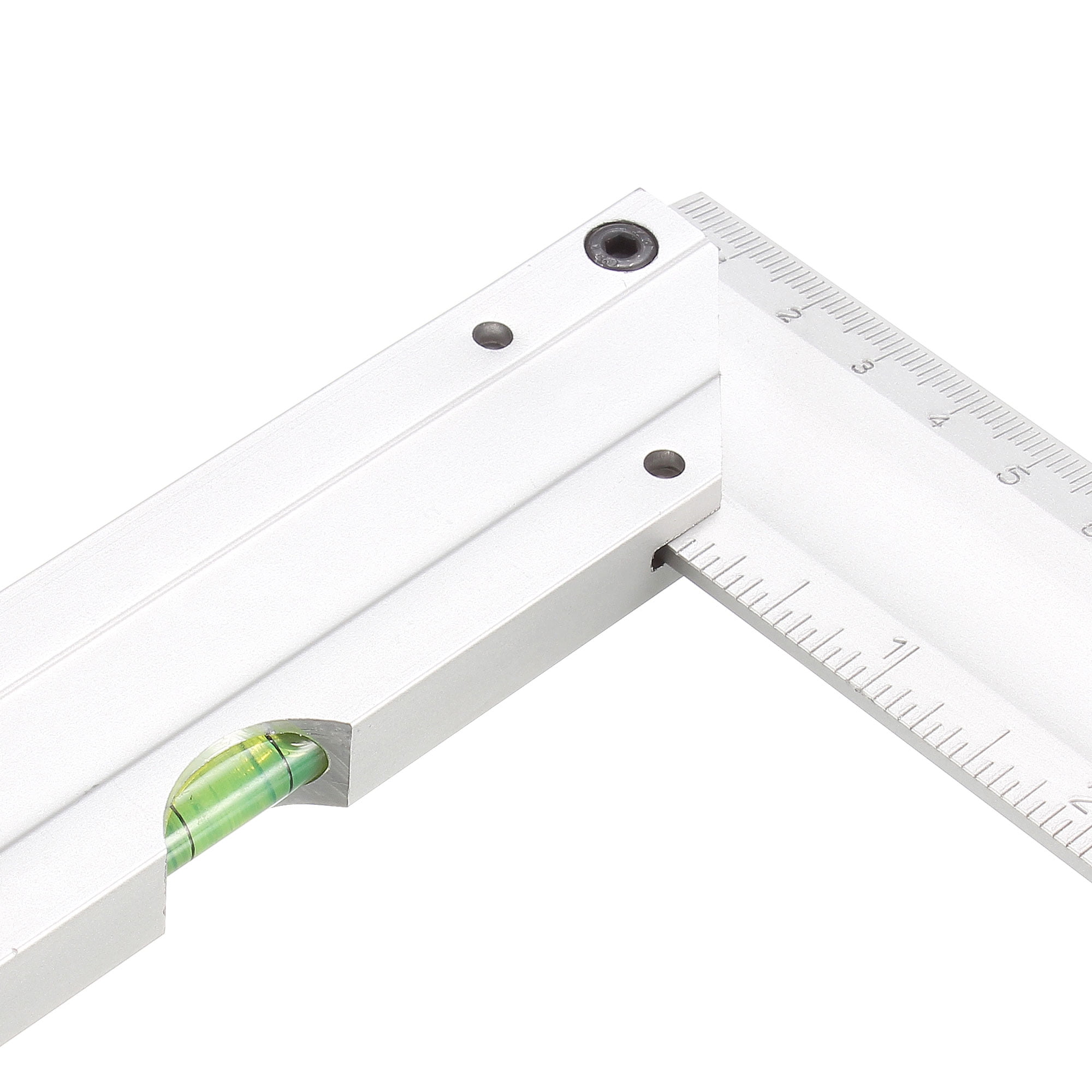 Uxcell L Shape Square 300mm/10 Inch Double Scale Aluminum Right Angle Ruler Layout Tool with Level Bubble