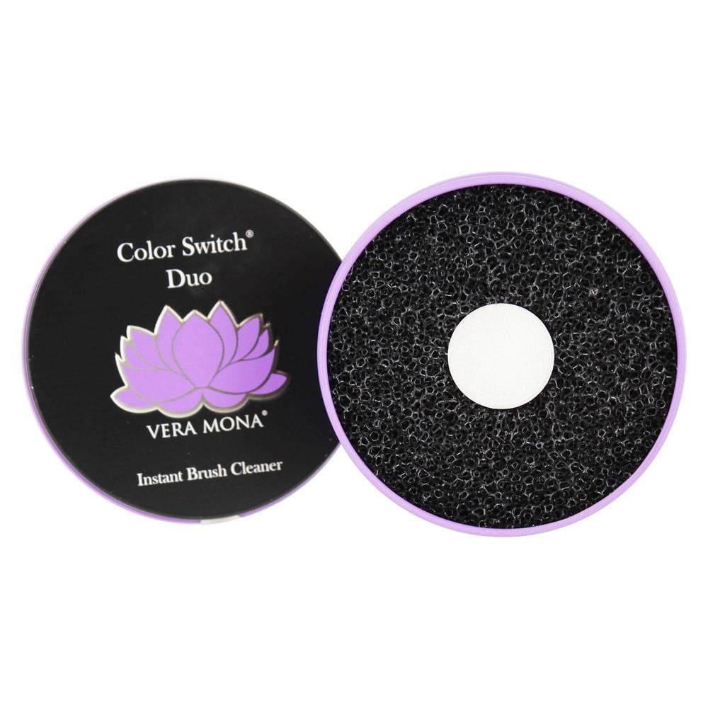 What it is: The Duo’s uniquely designed centered sponge enhances the color of the eye shadow when applied wet, resulting in a more vibrant look that is true to the pallet, or color being used. What it does: Removes the color from eye shadow brushes helping the makeup artist switch to another color quickly and efficiently. What else you need to know: Discard wet sponge after every use. Discontinue use of product if irritation on skin or eyes occurs. Stroke the eye shadow brush against the Duo sponge to completely remove the color being used and switch to the next. The Duo’s uniquely designed centered sponge enhances the color of the eye shadow when applied wet, resulting in a more vibrant look that is true to the pallet, or color being used. Product Options Available are as follows: Option: Duo – Vera Mona Color Switch Duo;Stroke your brush against the Solo sponge to completely remove eyeshadow color and then switch to the next color. Sponge can be used on either side and can be washed or replaced with a refill pack.Color Switch Duo by Vera Mona allows the makeup artist to quickly and efficiently switch between colors on your eyeshadow brushes. It is an essential tool that is extremely helpful while doing multiple jobs or different looks. Simply glide the eye shadow brush against the unique Solo sponge to completely remove eyeshadow color. Saving the user time and money. The Solo sponge can be used on either side and can be washed or replaced with a refill pack. Discontinue use of the product if irritation occurs on eyes or skin.