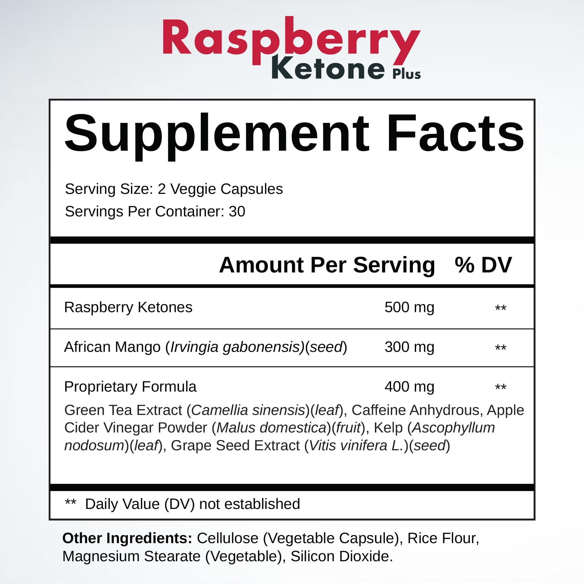 Raspberry Ketone Plus is a beautiful blend of four botanical extracts, along with caffeine, kelp, and grape seed extract.