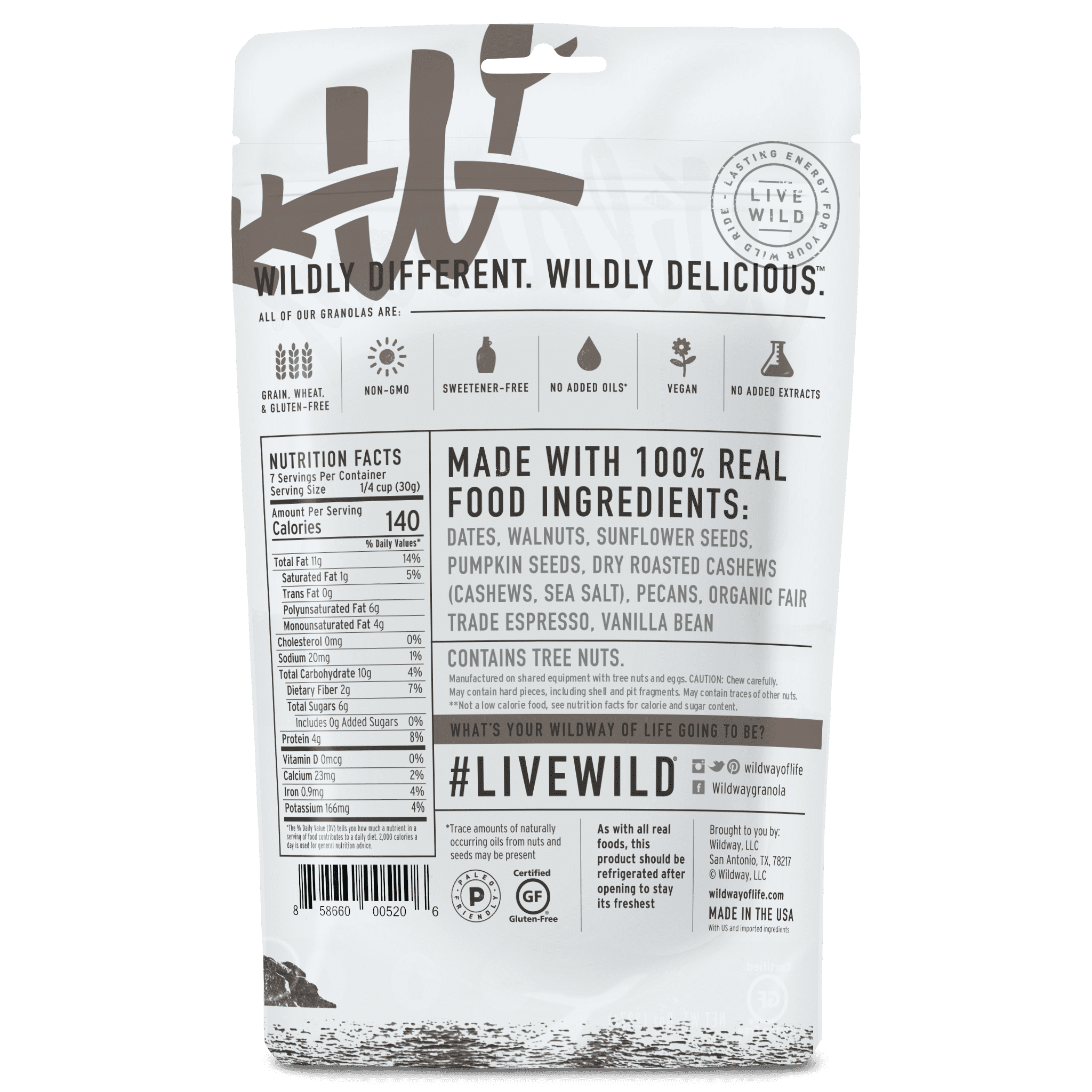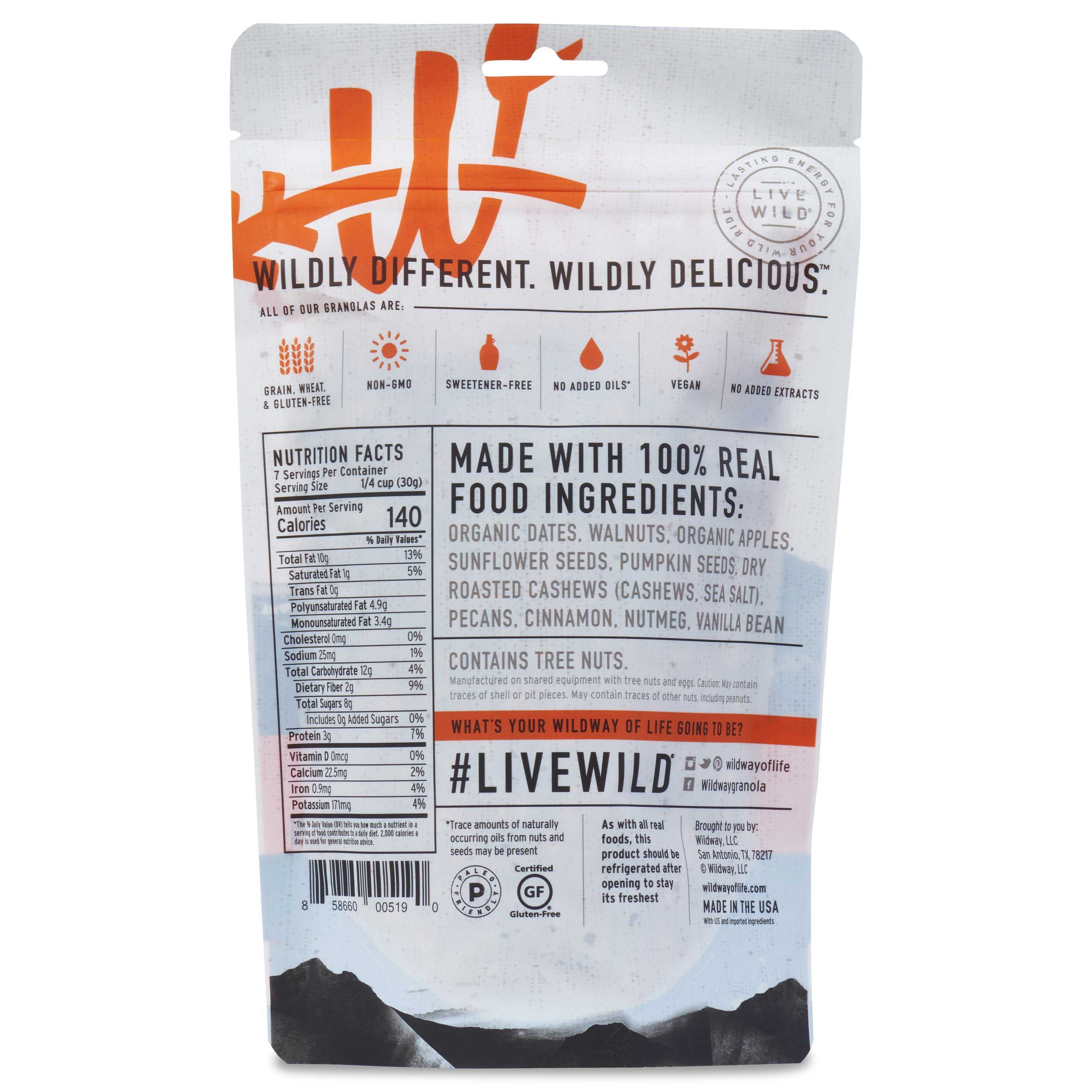 - 100% REAL FOOD INGREDIENTS: Non GMO, grain free fuel for all of life’s wild adventures. Grab a bag for your office, run, hike, mountain bike ride, or camping trip. Our granola is a soft and chewy combination of organic fruits, nuts, seeds, and spices