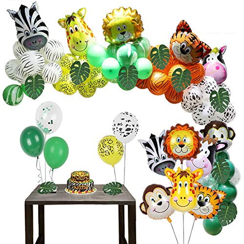 Jungle Zoo Safari Party Supplies Decoration Kit-Latex Balloons, Animal Foil Balloons, Green Palm Leaves for Forest Wild Animal Birthday Kids Boys Girls Baby Shower Decor