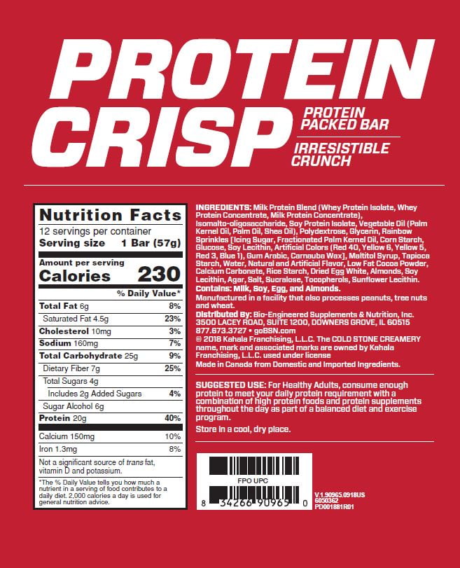 BSN Protein Crisp Protein Bar, Birthday Cake Remix, 20g Protein, 12 Ct