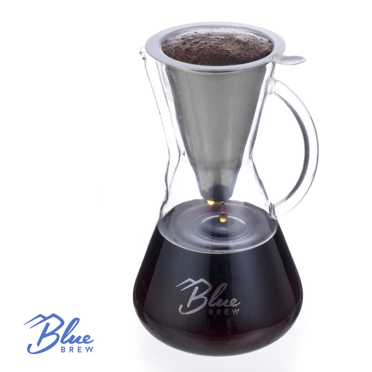 Blue Brew BB1011 Pour Over Brewer – Coffee Maker Carafe w/ Permanent Filter – 15oz