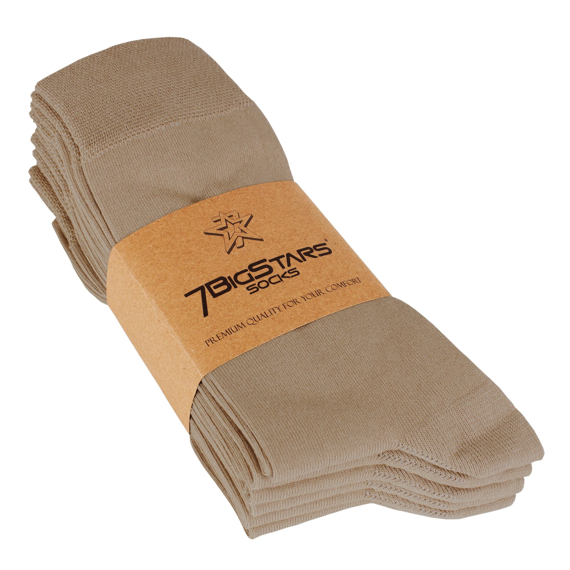 Mens Cotton Dress Soft Crew Socks, Beige, X-Large 13-15, 6 Pack