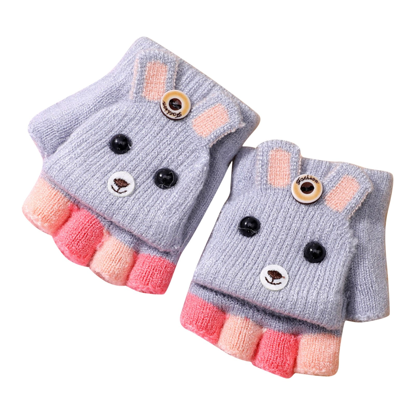 Cartoon Convertible Flip Top Gloves Toddler Kids Winter Wool Knit Fingerless Gloves With Mitten Cover For Girls Boys 2-15 Yrs