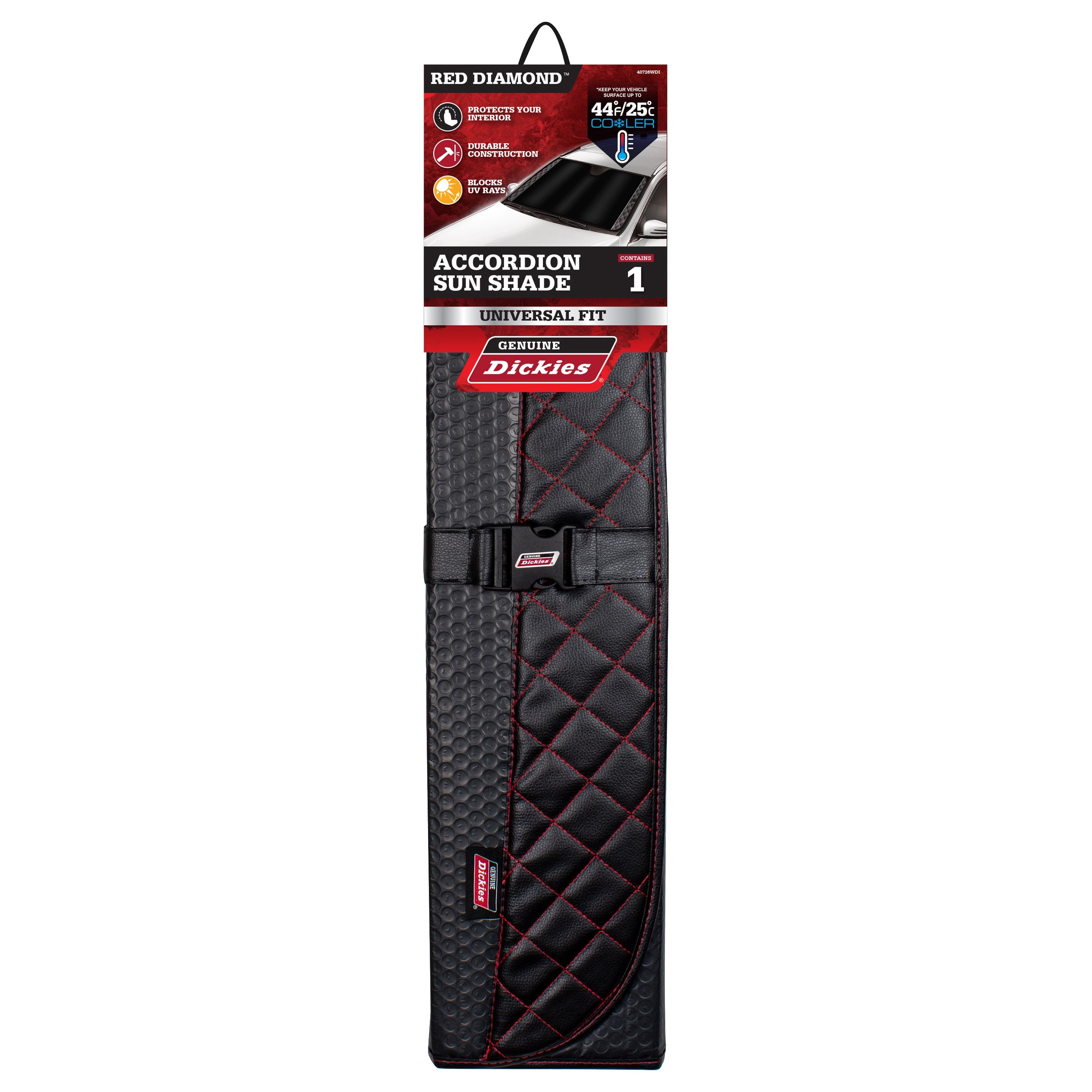 Genuine Dickies Red Diamond Accordion Auto Sun Shade, Black, Universal Fit