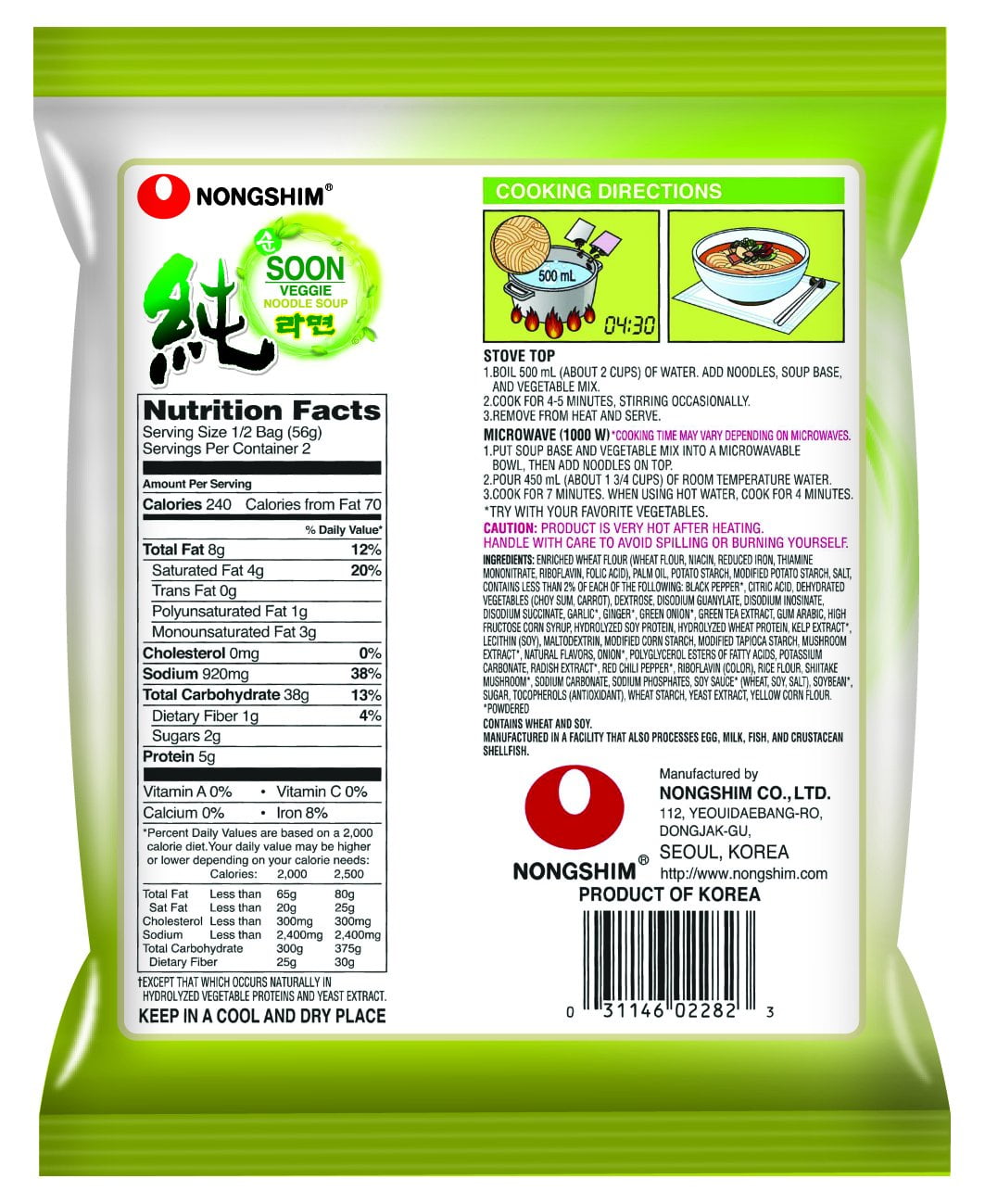 [8 Packs] Nongshim Soon Veggie Ramen Noodle Soup Ramyun, 3.95 oz, (농심 순라면 8 팩)
