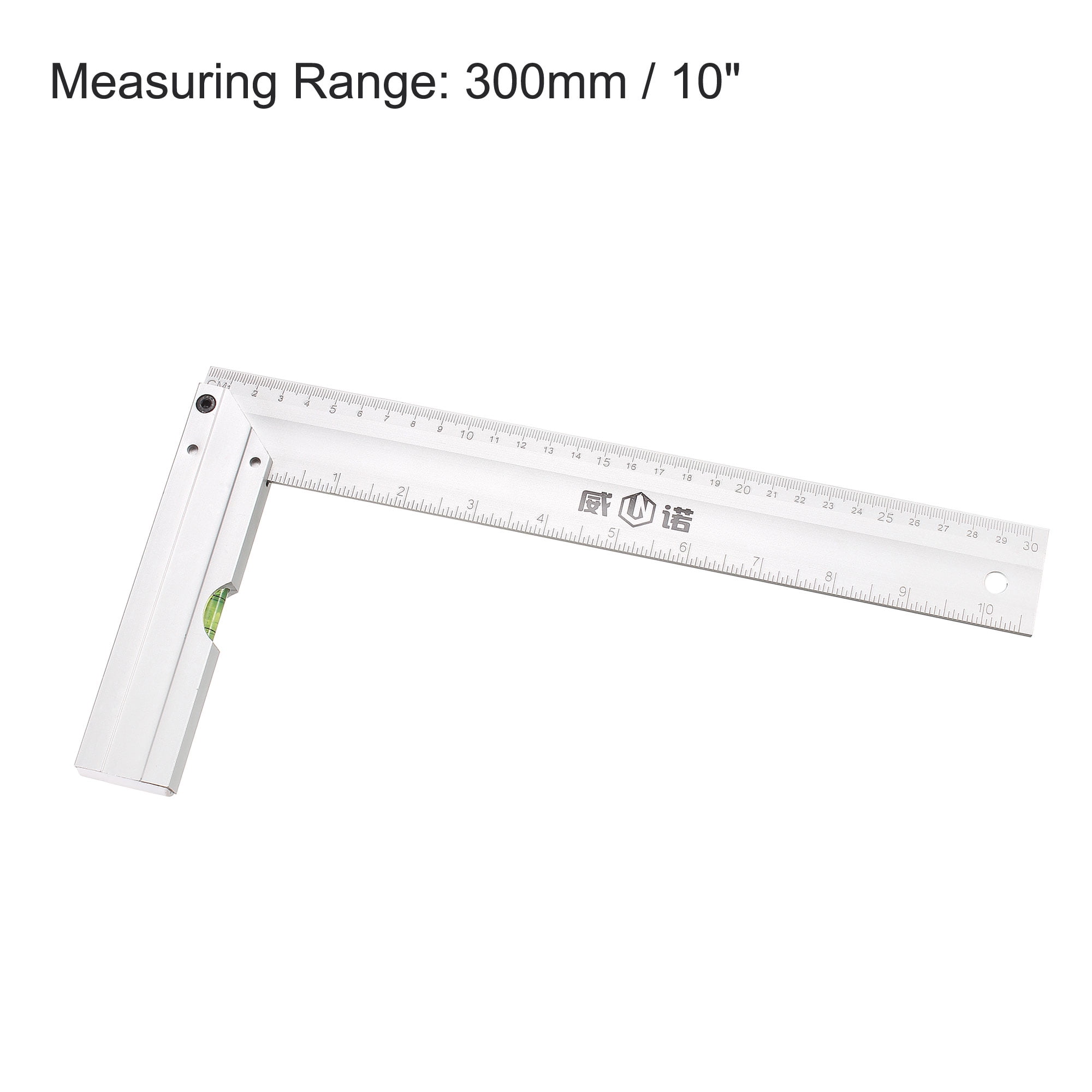 Uxcell L Shape Square 300mm/10 Inch Double Scale Aluminum Right Angle Ruler Layout Tool with Level Bubble