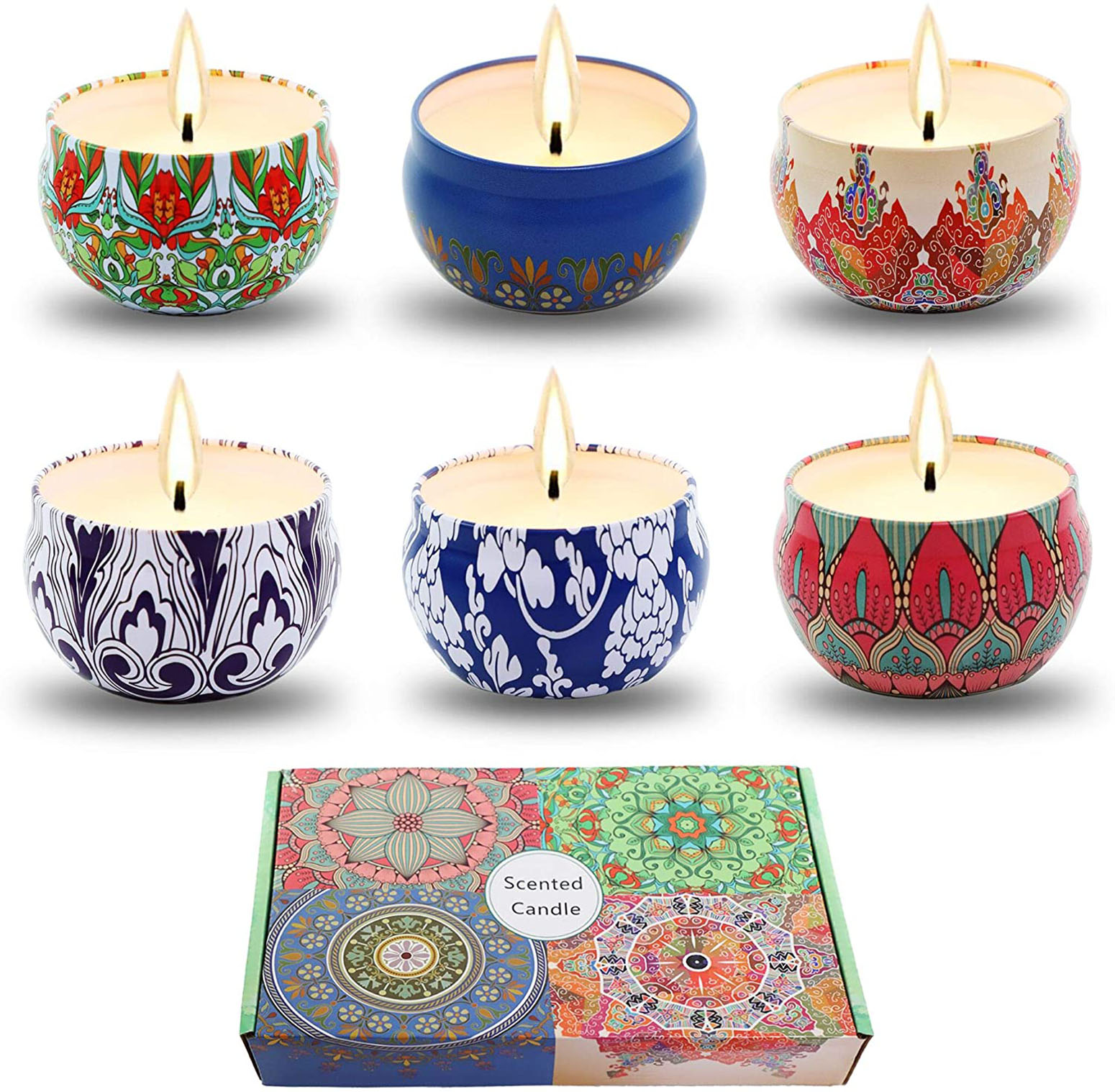 Scented Candles 6-Pack Vanilla Lavender Rose Orange Lemon Amber Musk