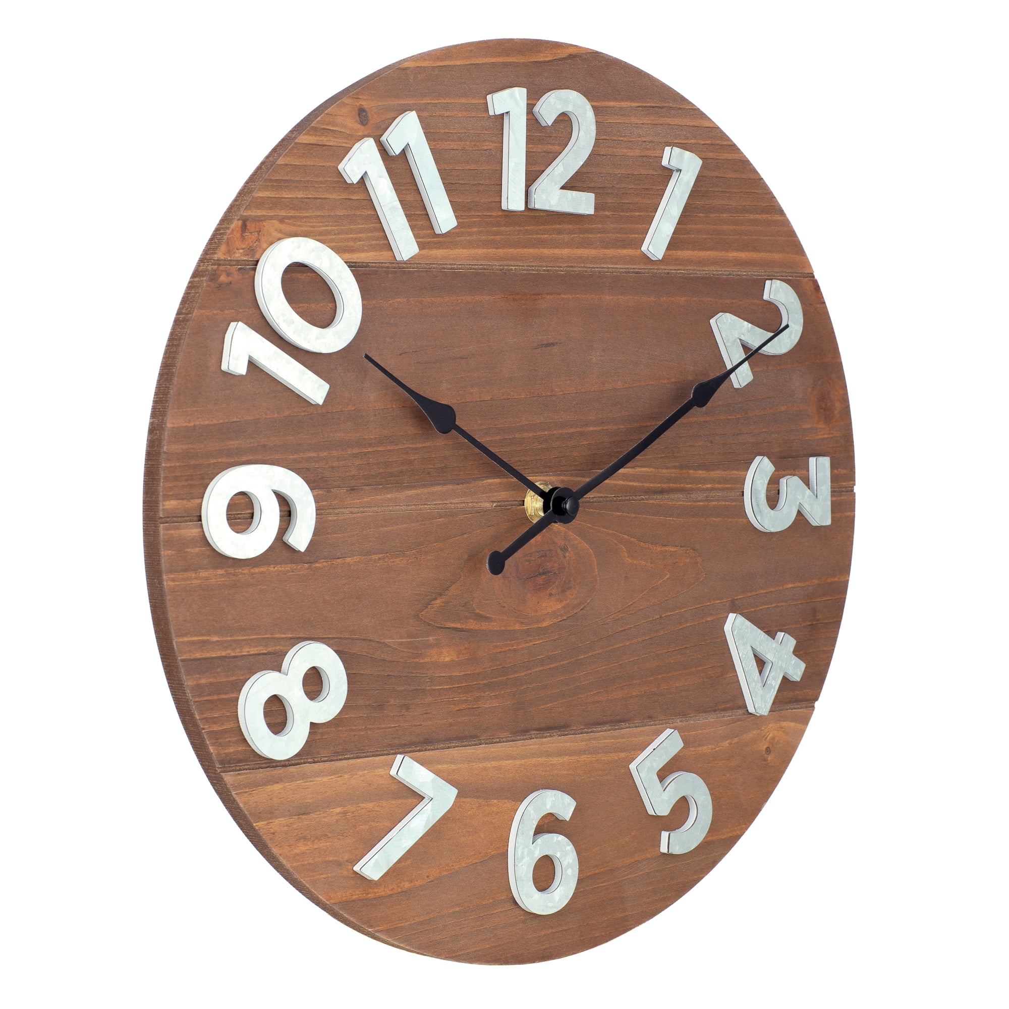 Patton Wall Decor 12′ Frameless Rustic Walnut Wood Plank Wall Clock with Galvanized Metal Numbers