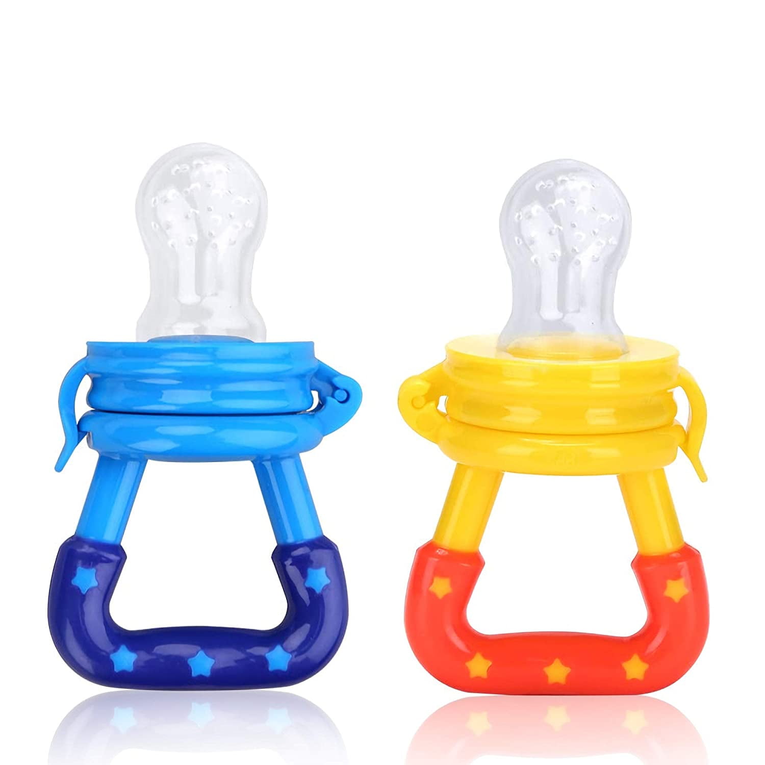 Baby Pacifier Food and Fruit Feeder, Silicone Teether, Small Size for Baby Boy 3-6 Months Old, Blue & Yellow – 2 Pack