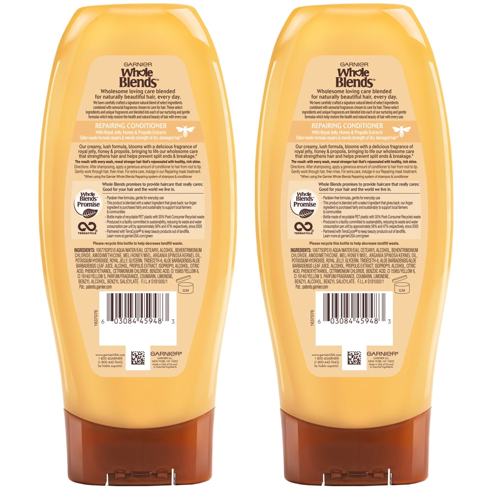 Garnier Whole Blends Repairing Conditioner Honey Treasures, For Damaged Hair, 2 count