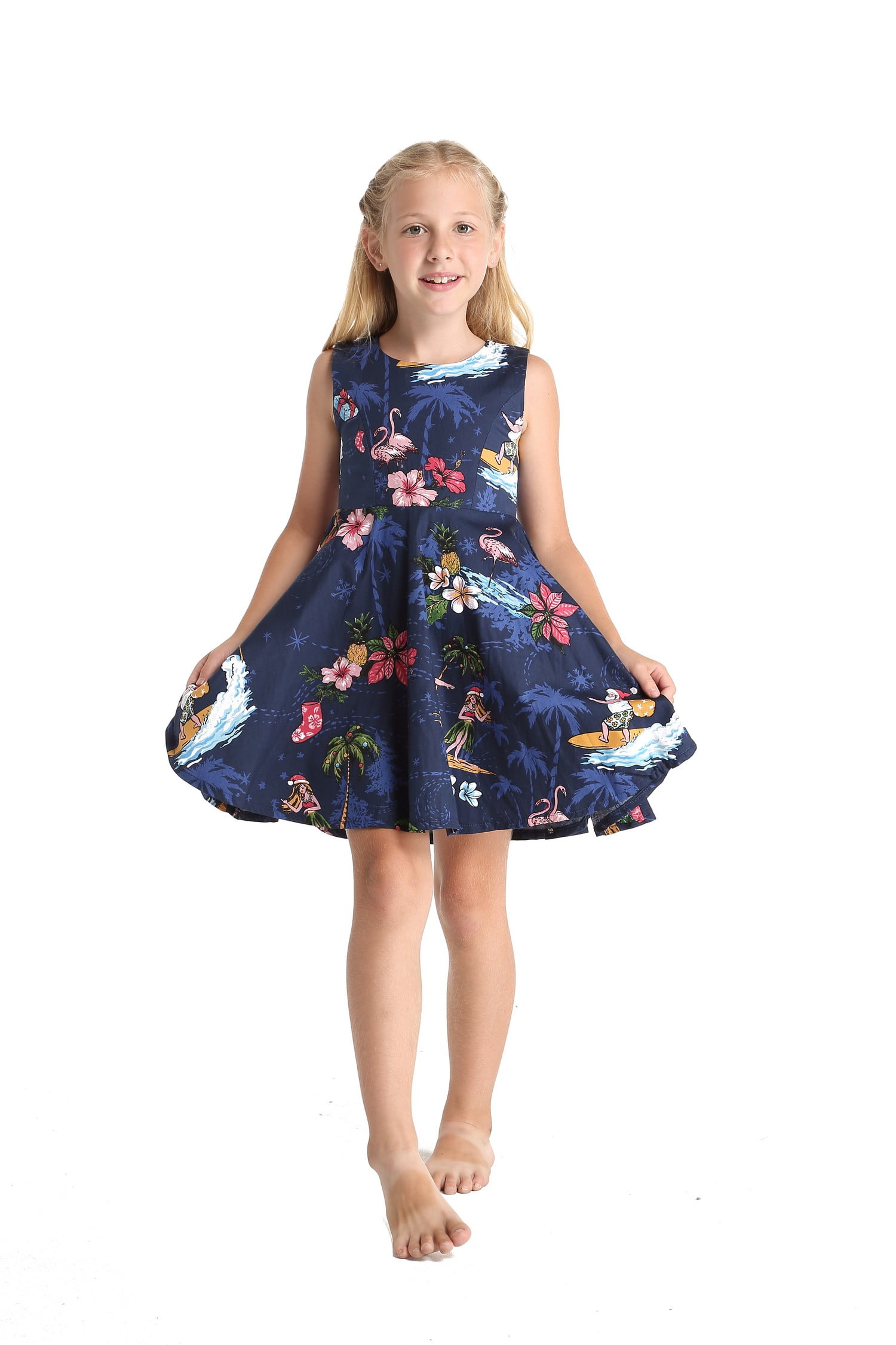 Girl Hawaiian Vintage Fit and Flare Dress in Christmas Santa in Hawaii