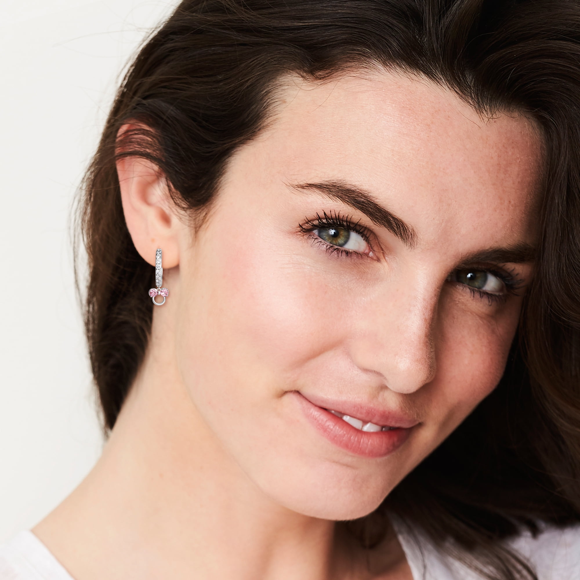 Disney Minnie Mouse Female CZ Silver Plated Minnie Hoop Dangle Earrings