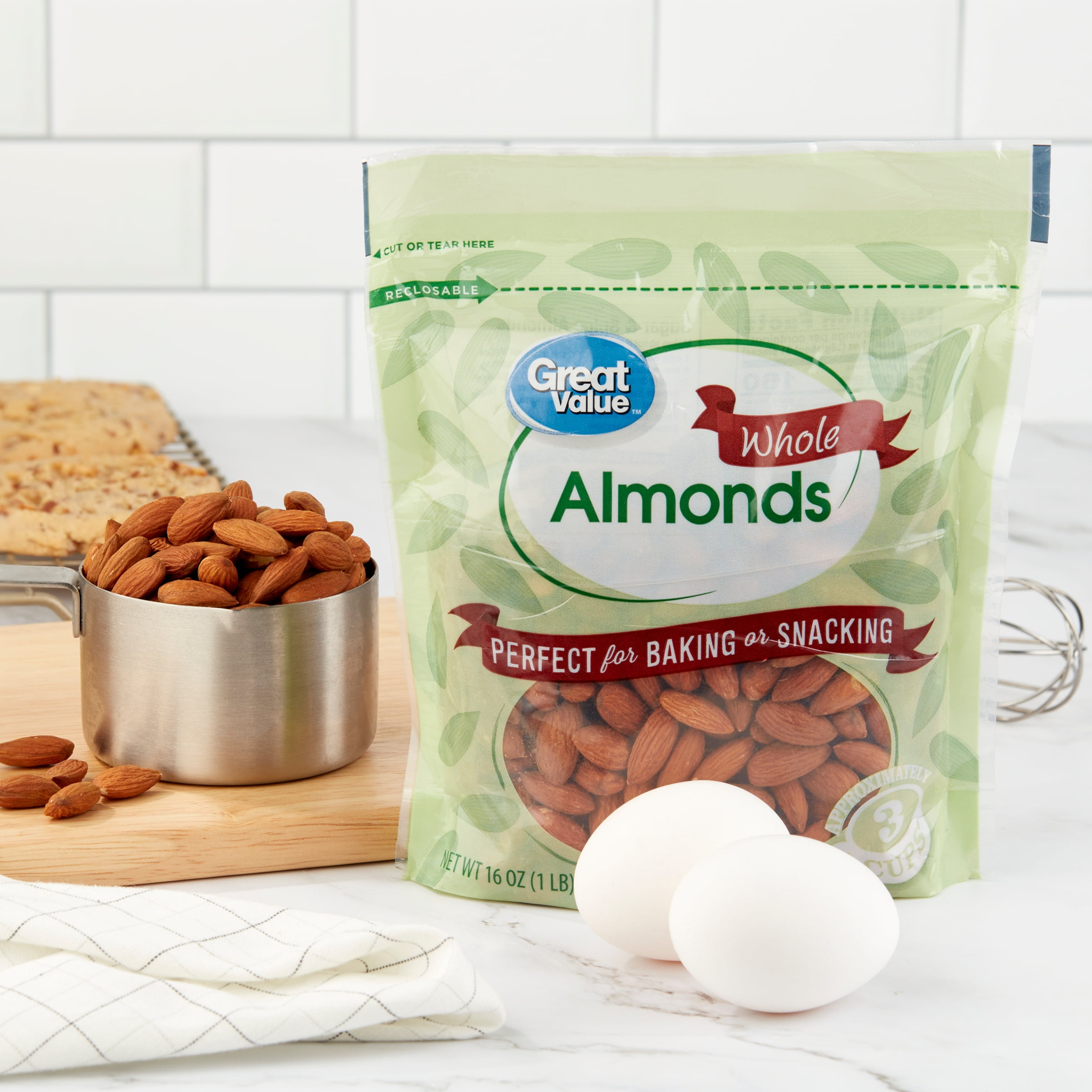 Great Value Whole Almonds, 16 oz, Re-Closable Pouch
