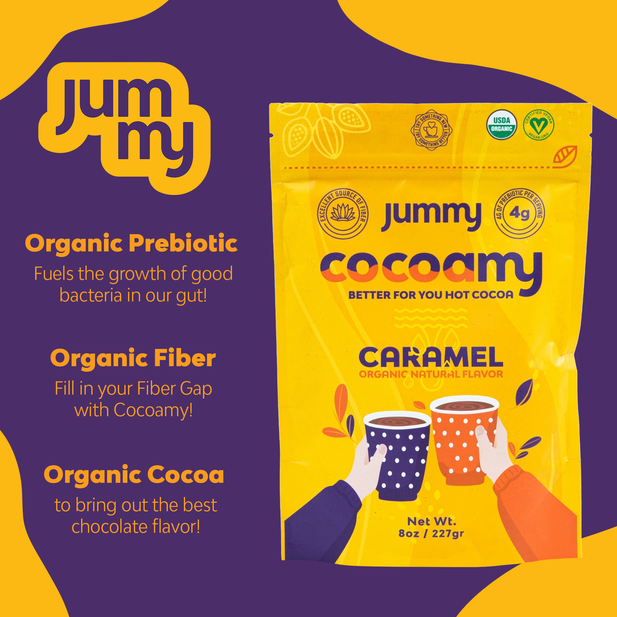 Jummy – Cocoamy Organic Hot Cocoa Chocolate Flavor with Fiber and Prebiotic