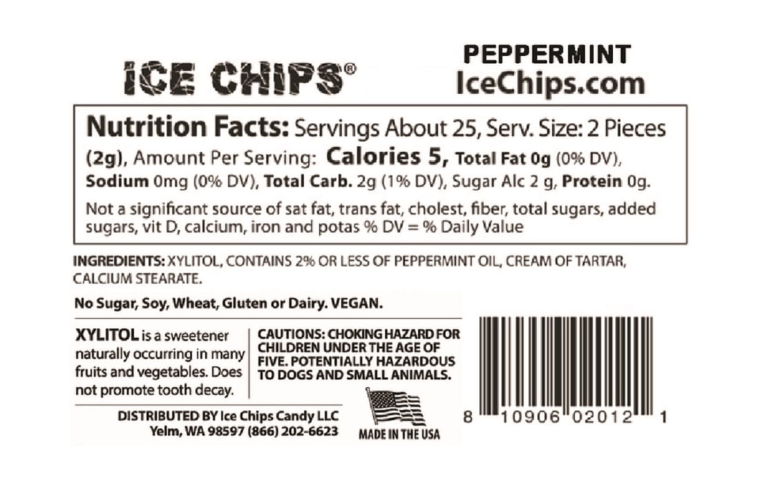 ICE CHIPS Xylitol Candy, Spearmint (6 Tins)