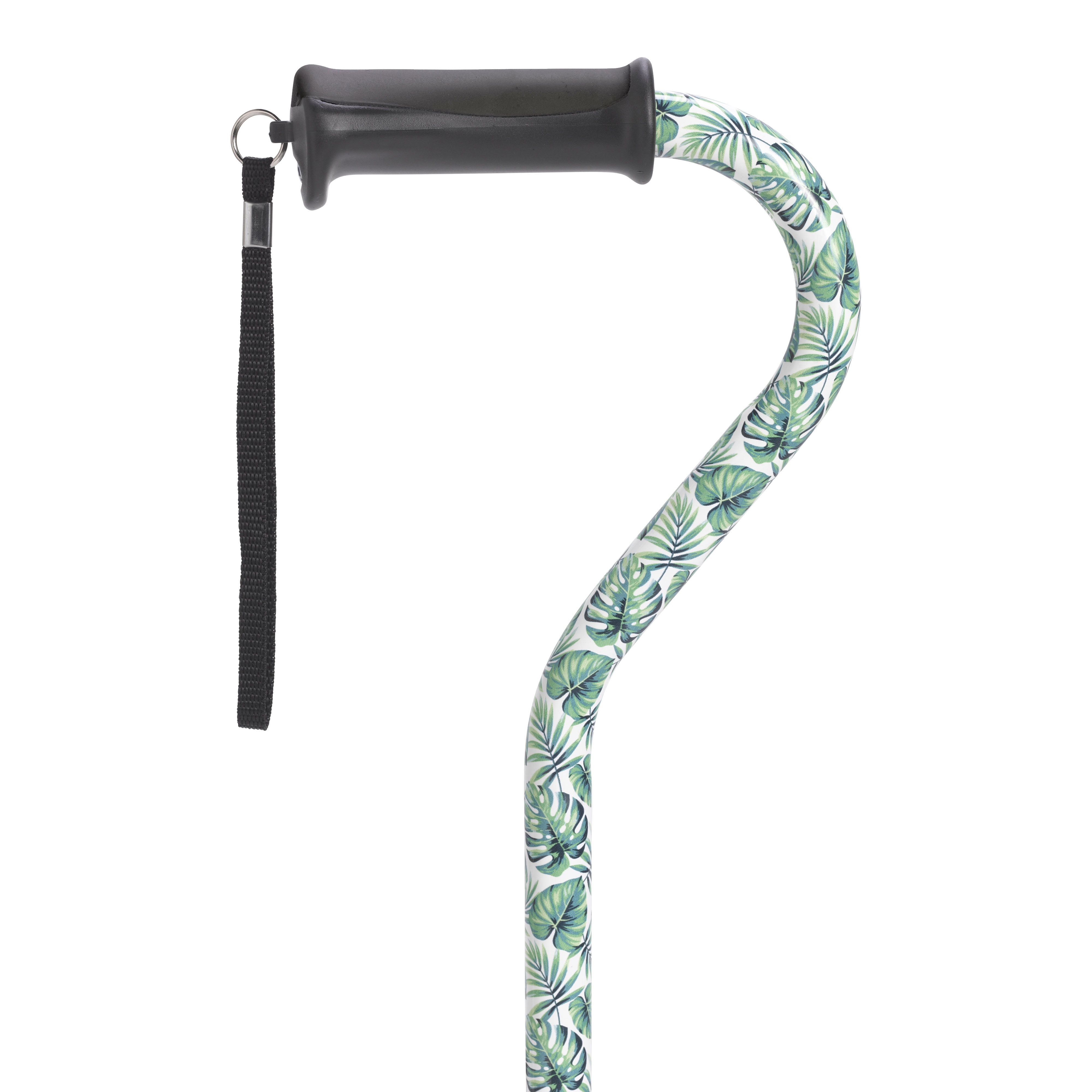 Adjustable Height Offset Handle Cane with Gel Hand Grip, Green Leaves