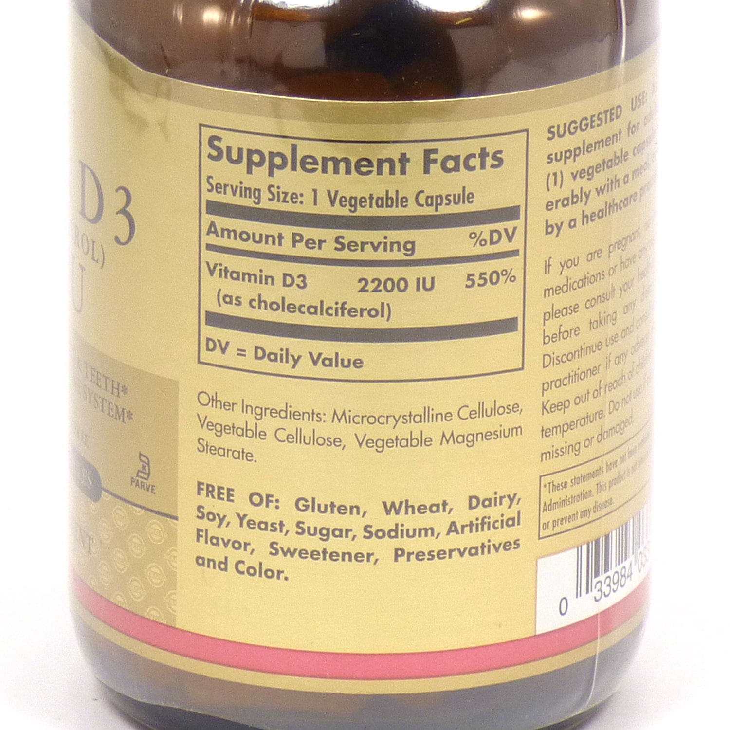 Solgar Vitamin D3 (Cholecalciferol) 2200 Iu 2,200 Iu 100 Veg Caps