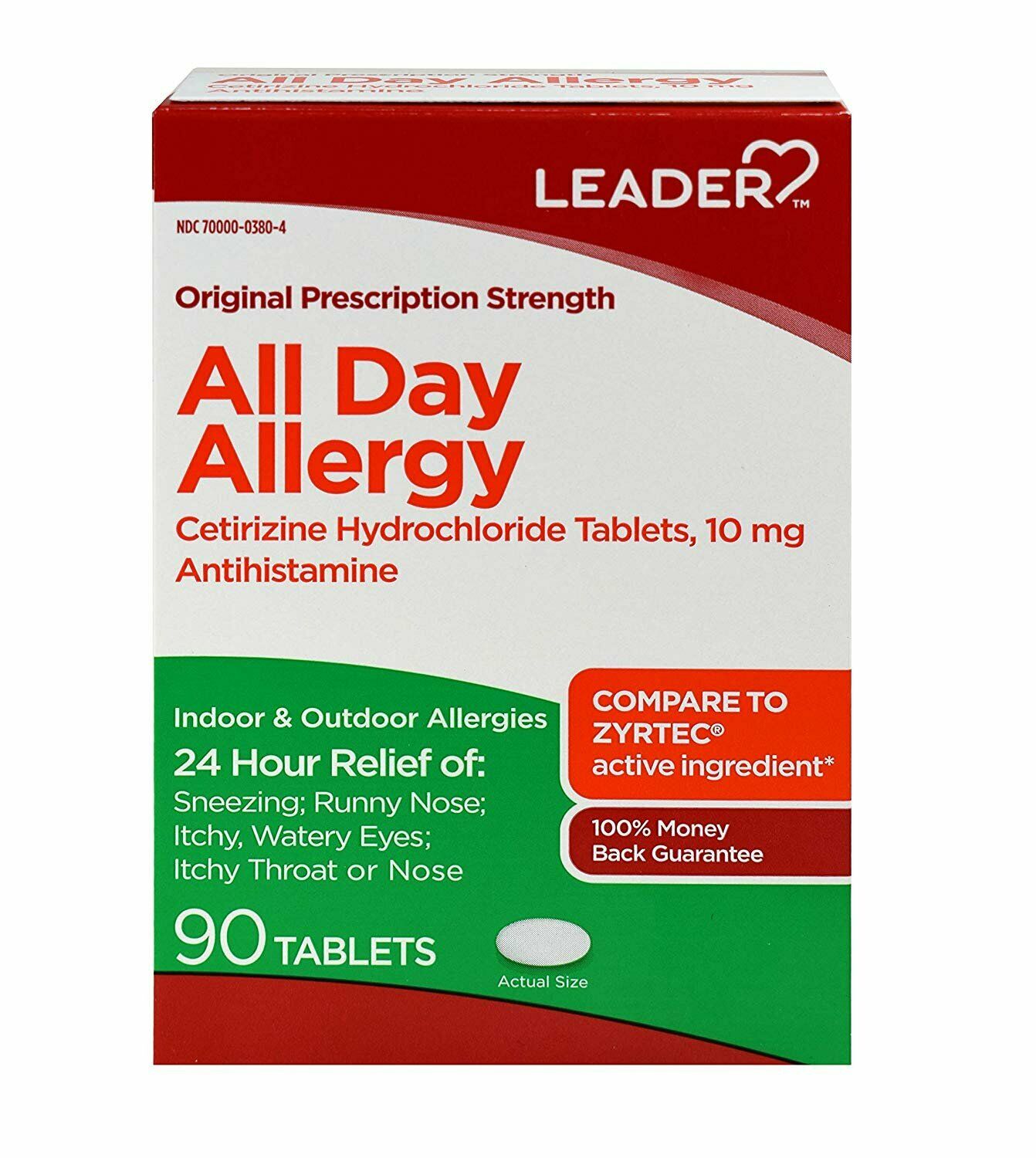 Leader 24 Hour All Day Allergy Relief, Cetirizine HCL Tablets, 10 mg, 90 Count