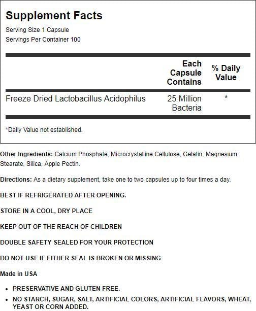 Nature’s Blend Freeze Dried Lactobacillin Acidophilus Capsules, 100 Count