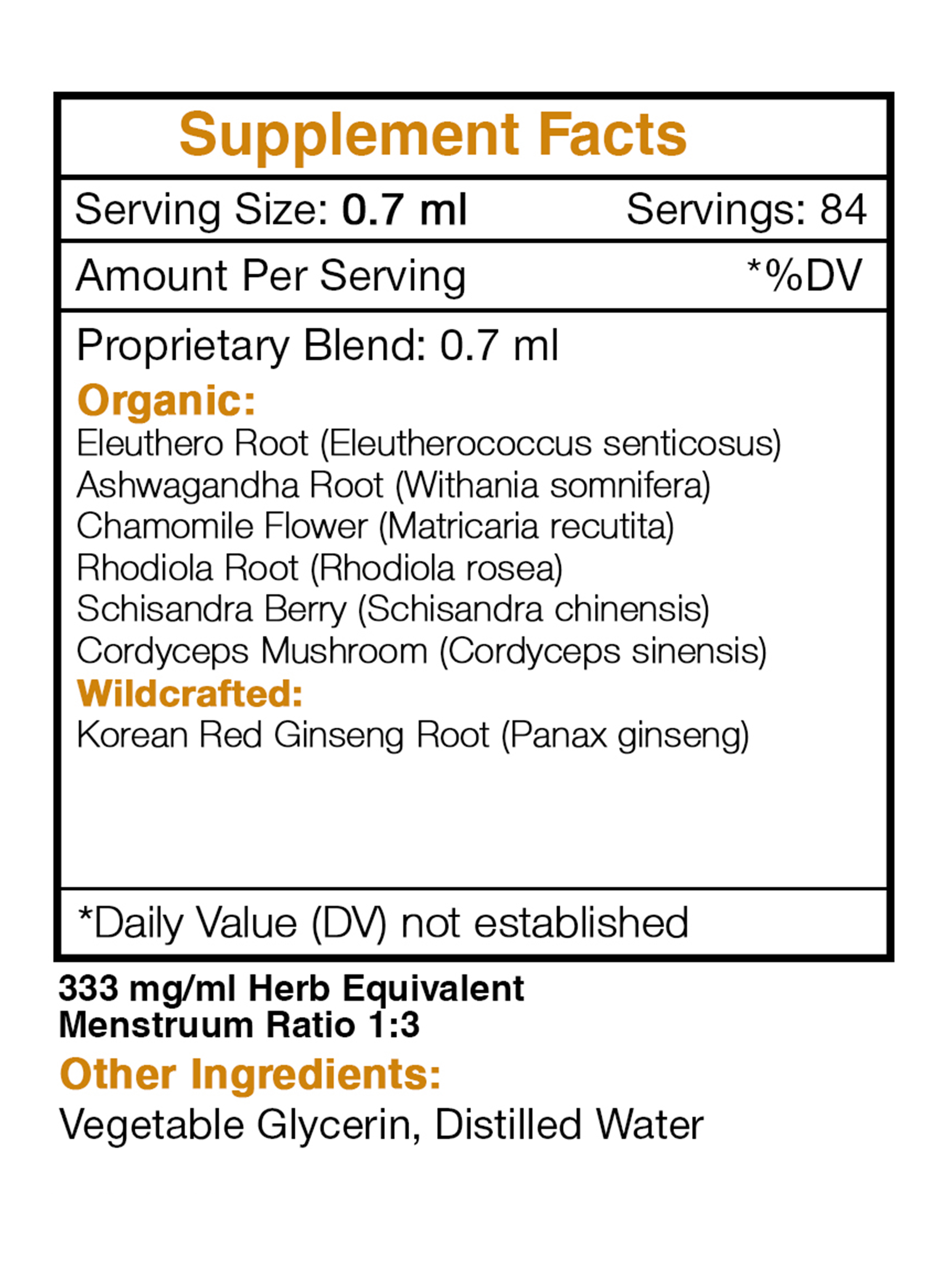 Desert Serenity Alcohol-FREE Extract, Tincture, Glycerite Eleuthero, Korean Red Ginseng, Ashwagandha, Chamomile, Rhodiola, Schisandra, Cordyceps. Adaptogen/Stress-free Formula 2 oz