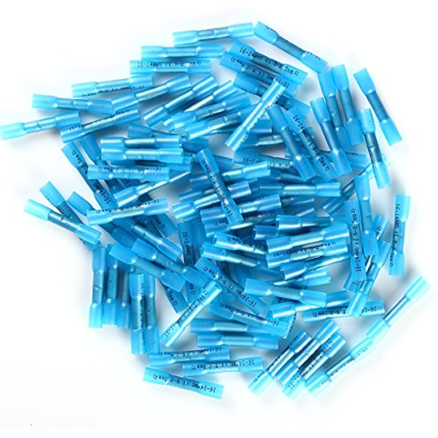 (100) 16-14 AWG BLUE HEAT SHRINK BUTT WIRE CONNECTOR AUTOMOTIVE-MARINE GRADE