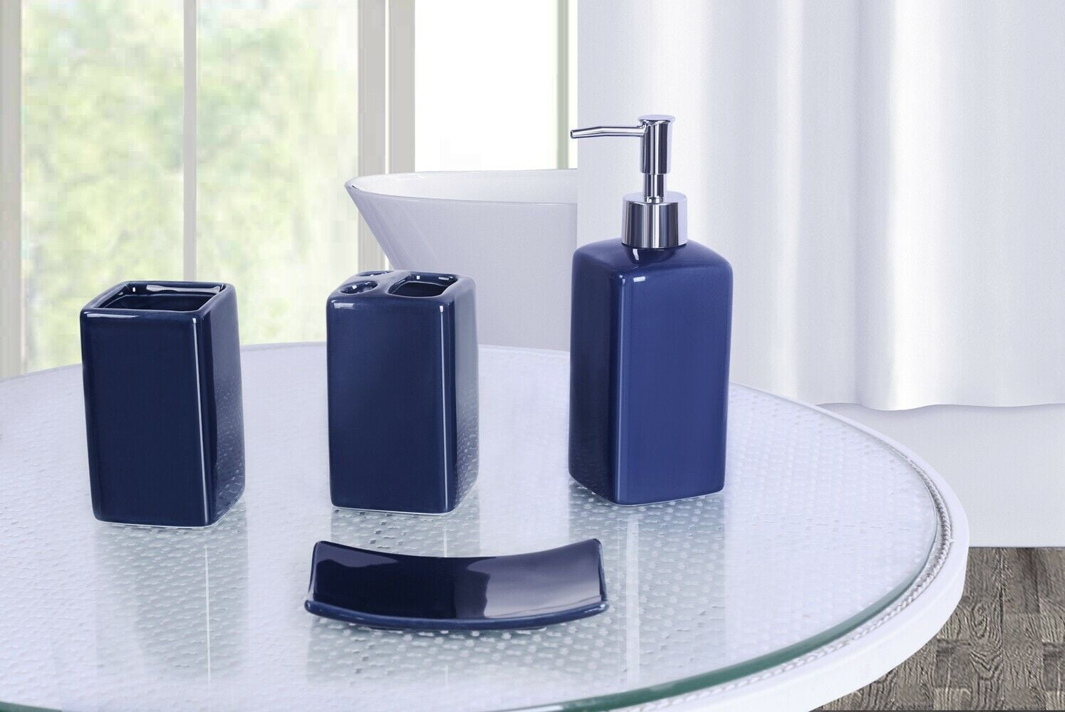 Blue Donuts Decorative 4 Piece Solid Ceramic Bath Accessories Sets, Silver